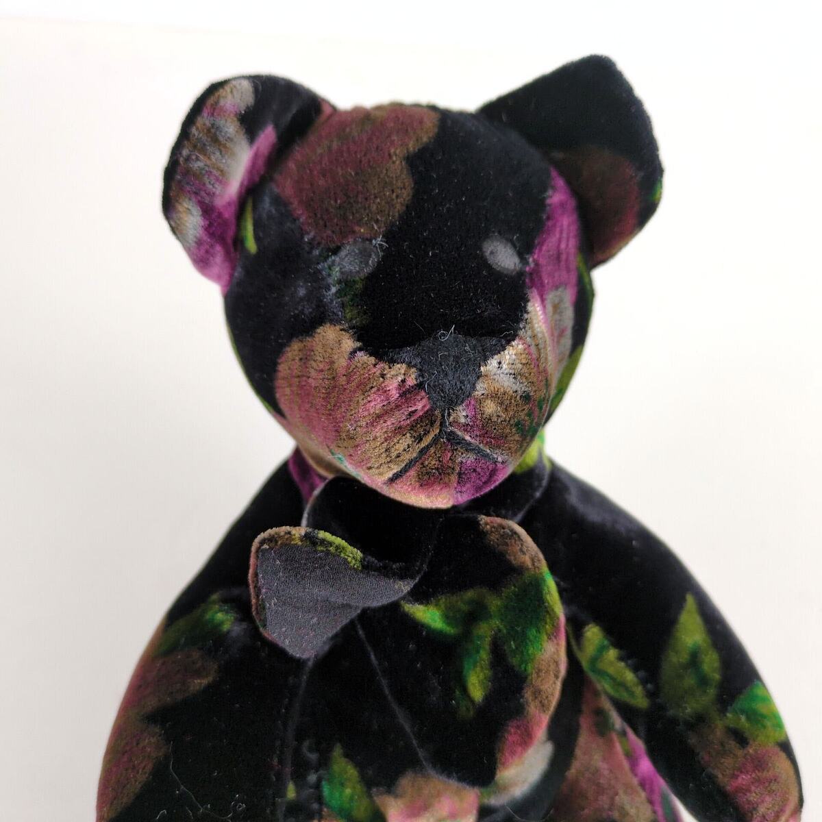 - Vintage CHICO'S Black Floral Velvet 9" Teddy Bear Velveteen Stuffed Animal Plush