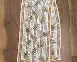 vintage 70s Cacharel silk scarf collab with Glentex. Features a paisley and floral print on a background of orange and white stripe. Measures approximately 10 inches wide by 44 inches long. The color pallet is ivory, toffee, which is a Tony Brown with pumpkin spice, undertones, sage, green, and dark green and lavender. No holes or stains. Also no tags, but the brand is printed on one tail.