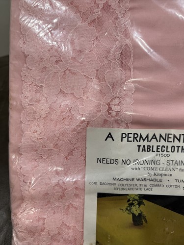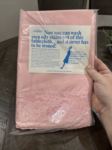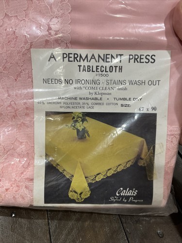- Vintage Calais Pink Lace Tablecloth 67 X 90 Progress Polyester Cotton