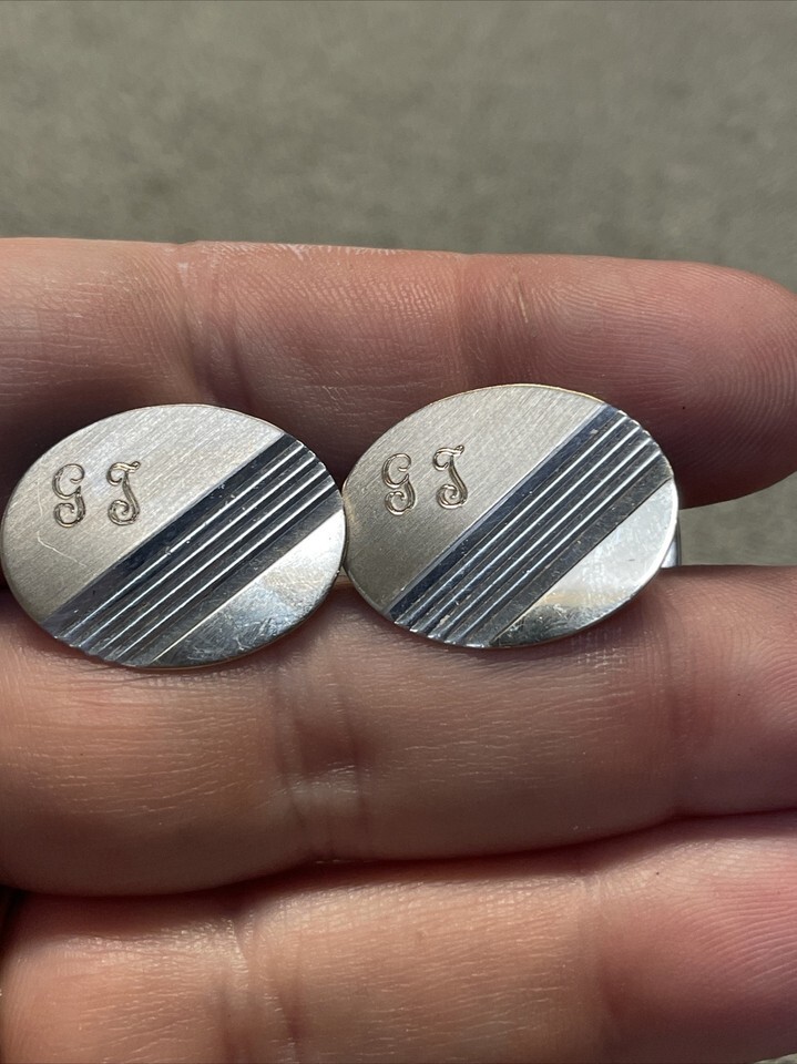 - Vintage Calibri Sterling Silver 14kt Gold Accent Cuff Links KG