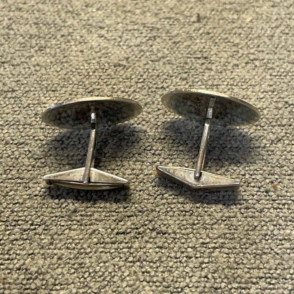 Vintage Calibri Sterling Silver 14kt Gold Accent Cuff Links KG