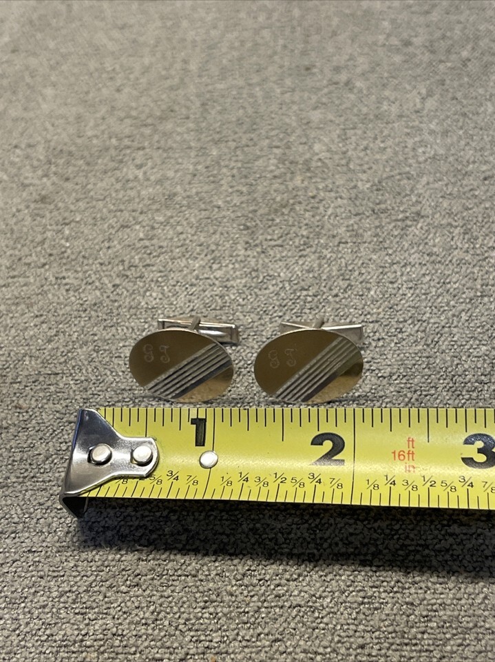 Sterling silver cuff links, with 14kt gold accents on the front. Engraved GT on the front. Please see pictures for condition details and measurements.