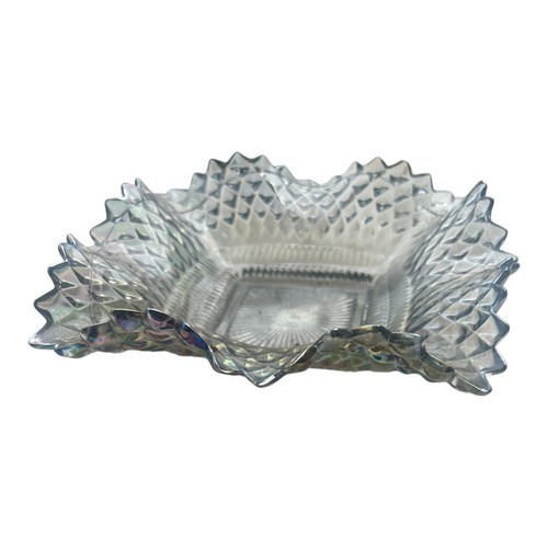 - Vintage Candy Dish/Ash Tray iridescent Blue Diamond Point Ruffled Edge 7 Inches