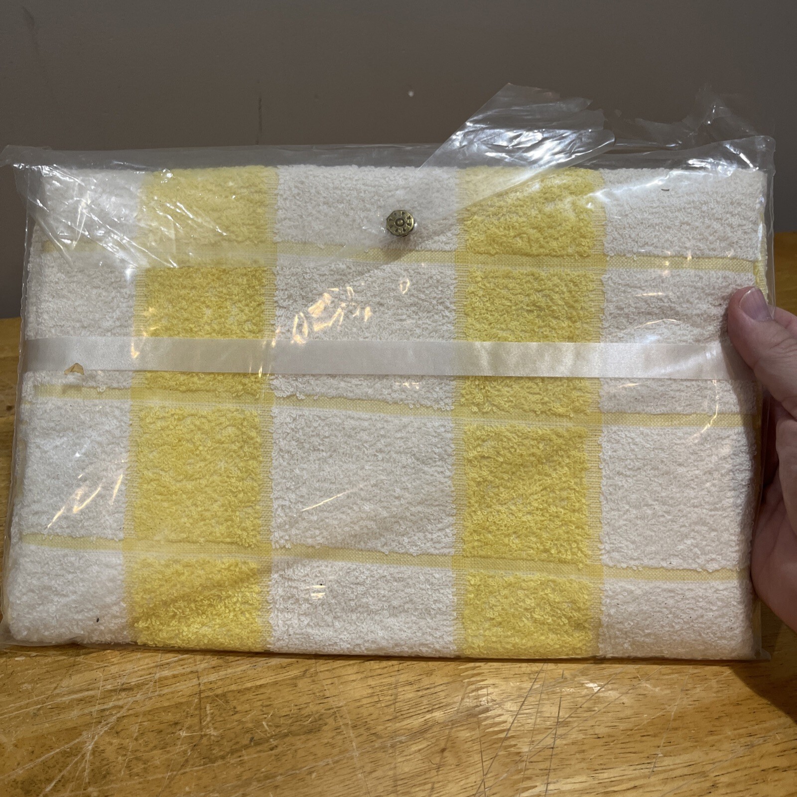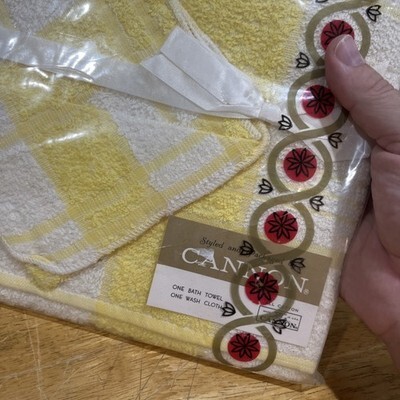 - Vintage Cannon Yellow Checked 22"x44" Bath Towel & One Wash Cloth Set Gift 60s