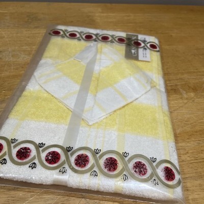 Vintage Cannon Yellow Checked 22"x44" Bath Towel & One Wash Cloth Set Gift 60s