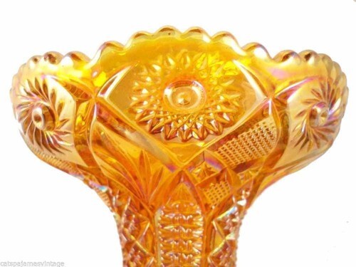 - Vintage Carnival Glass Pedestal Marigold Scalloped Pressed Depression 5" Tall