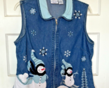 - Vintage Carolina Blues Denim Vest with Snowman Embroidery Size L