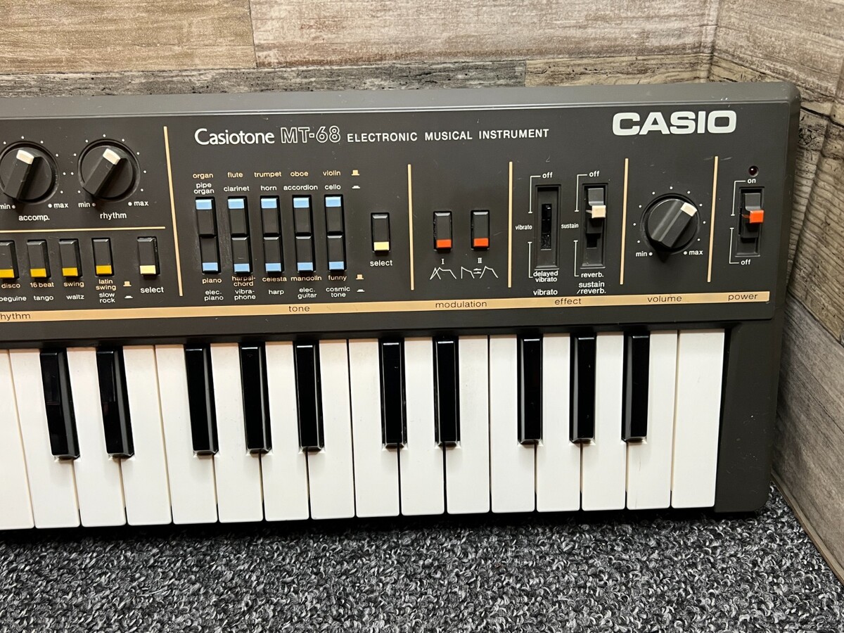 The item for sale is a vintage Casio Casiotone MT-68 Keyboard with power supply. In good used working condition. Missing the cap for the vibrato slider. See video showing the operation of the instrument.