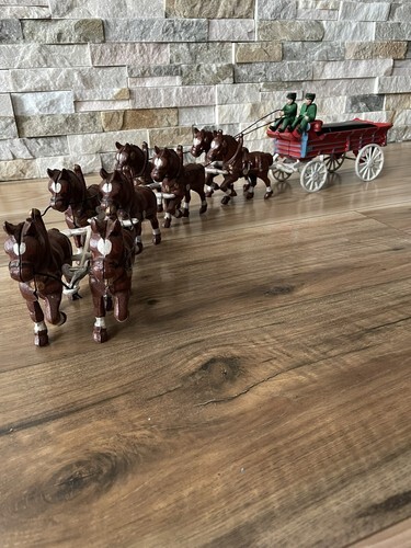 - Vintage Cast Iron 6 Horses and Carriage with Driver Horse VTG Bs296