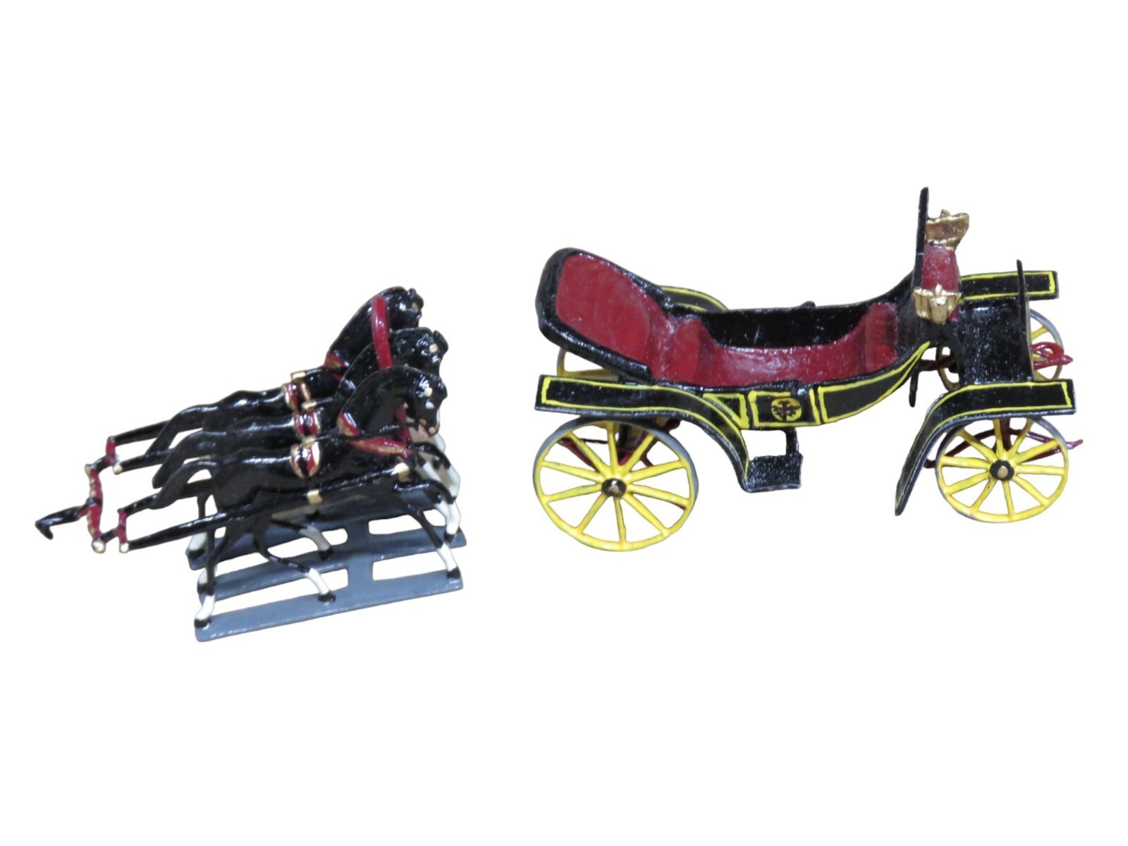- Vintage Cast Iron Horse and Carriage 5.5" - w/ Driver and Riders