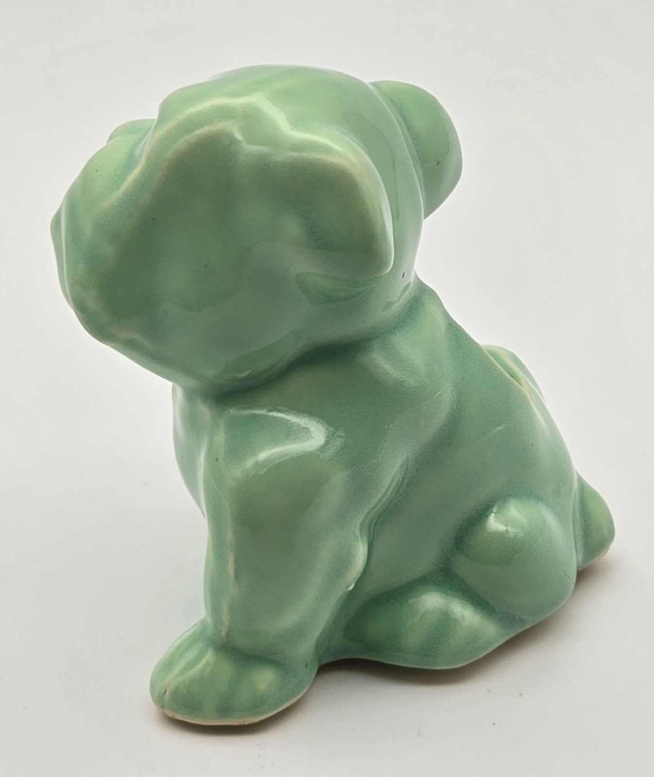 - Vintage Ceramic Bulldog Figurine Green Glazed Mid Century Pottery Dog Planter
