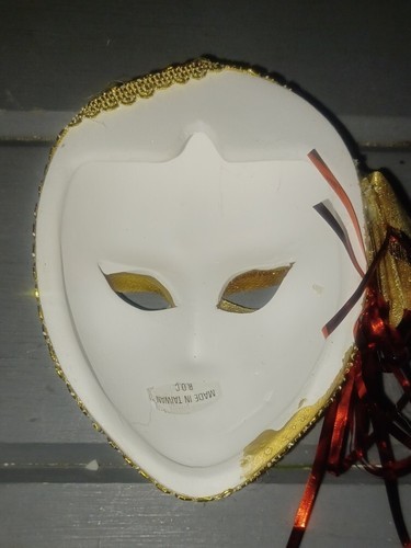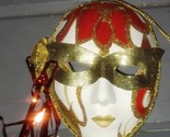 - Vintage Ceramic Mardi Gras Mask Christmas Ornament Red White Gold 3 1/2 x 2 1/2"