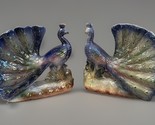 - Vintage Ceramic Peacock Figurines Pair Iridescent Finish Bird Statues Decor
