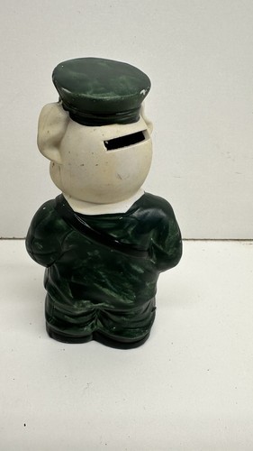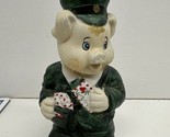 Vintage Ceramic Piggy Bank Statue Mailman Pig W Hat 6 Inch