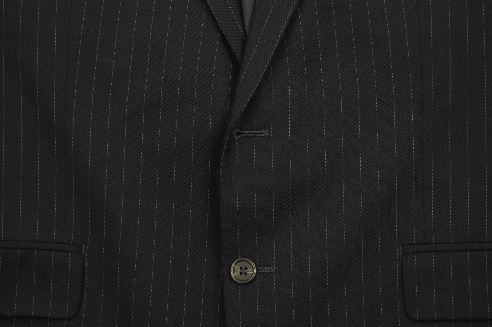 Jacket: Missing top button. Blemishes on front.