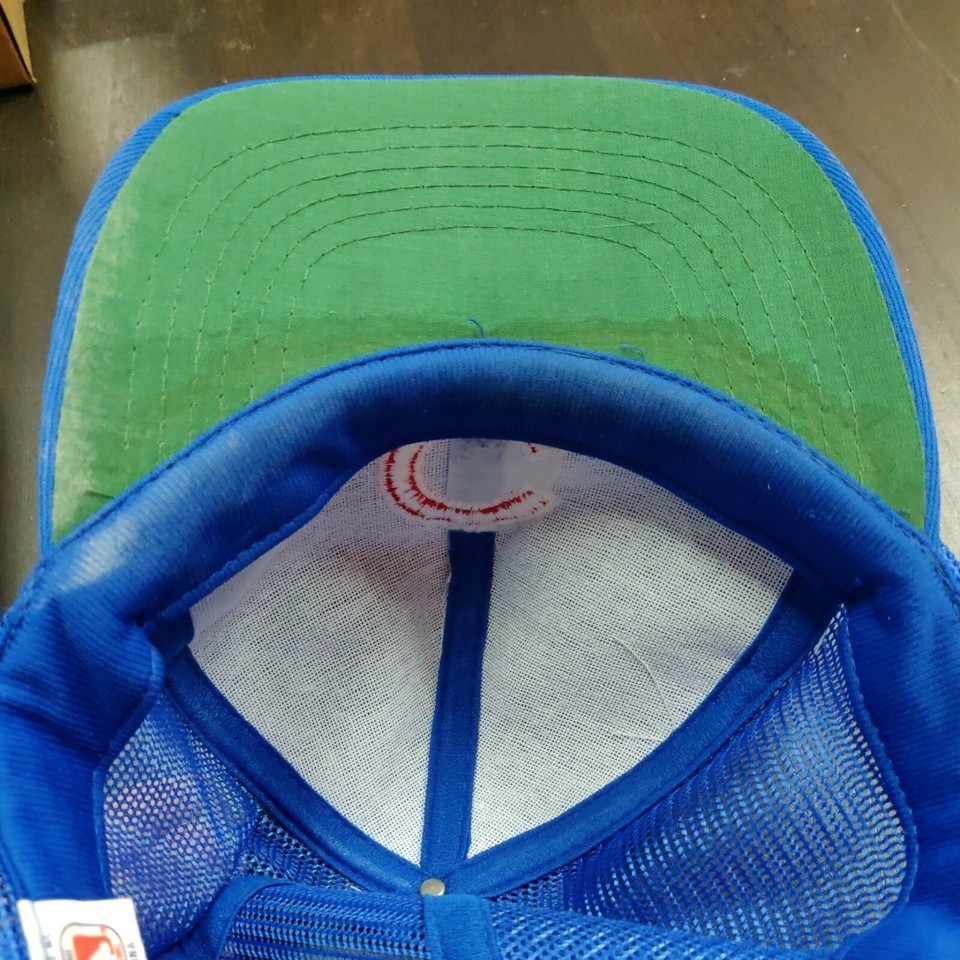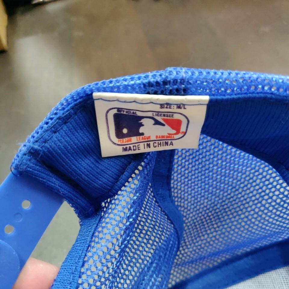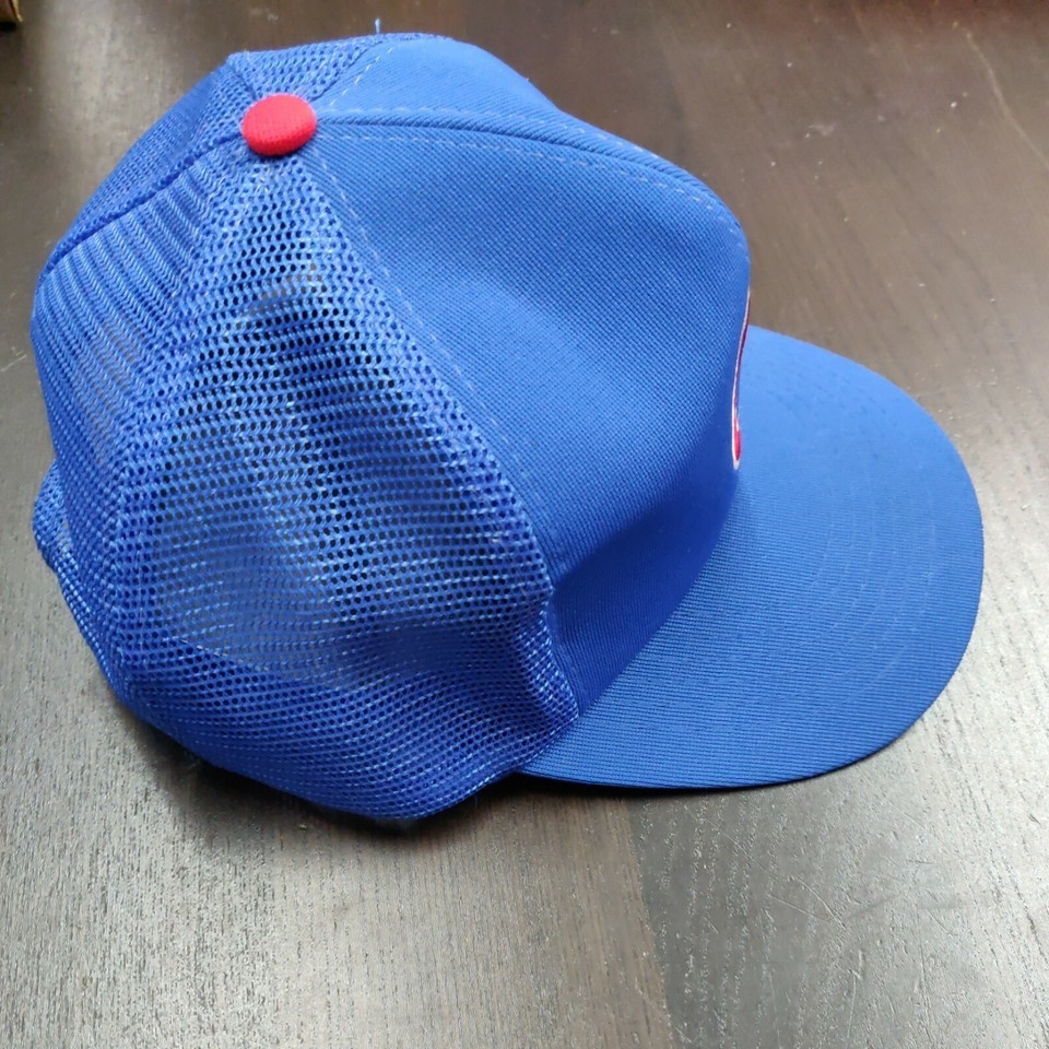 Vintage Chicago Cubs Snap Back Mesh Trucker Hat MLB Baseball Plain Logo. Condition is "Pre-owned". Discoloration on the inside brim, with some lightened and darkened spots.