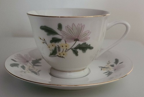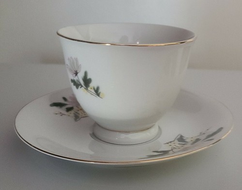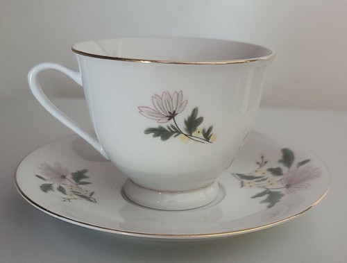 - Vintage China Tangshan Footed Teacup & Saucer Set ~ Floral Design ~ Gold Trim