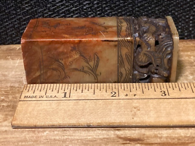 - Vintage Chinese Art Carved Soapstone Seal, Stamp, Chop- with Mountain Scenery