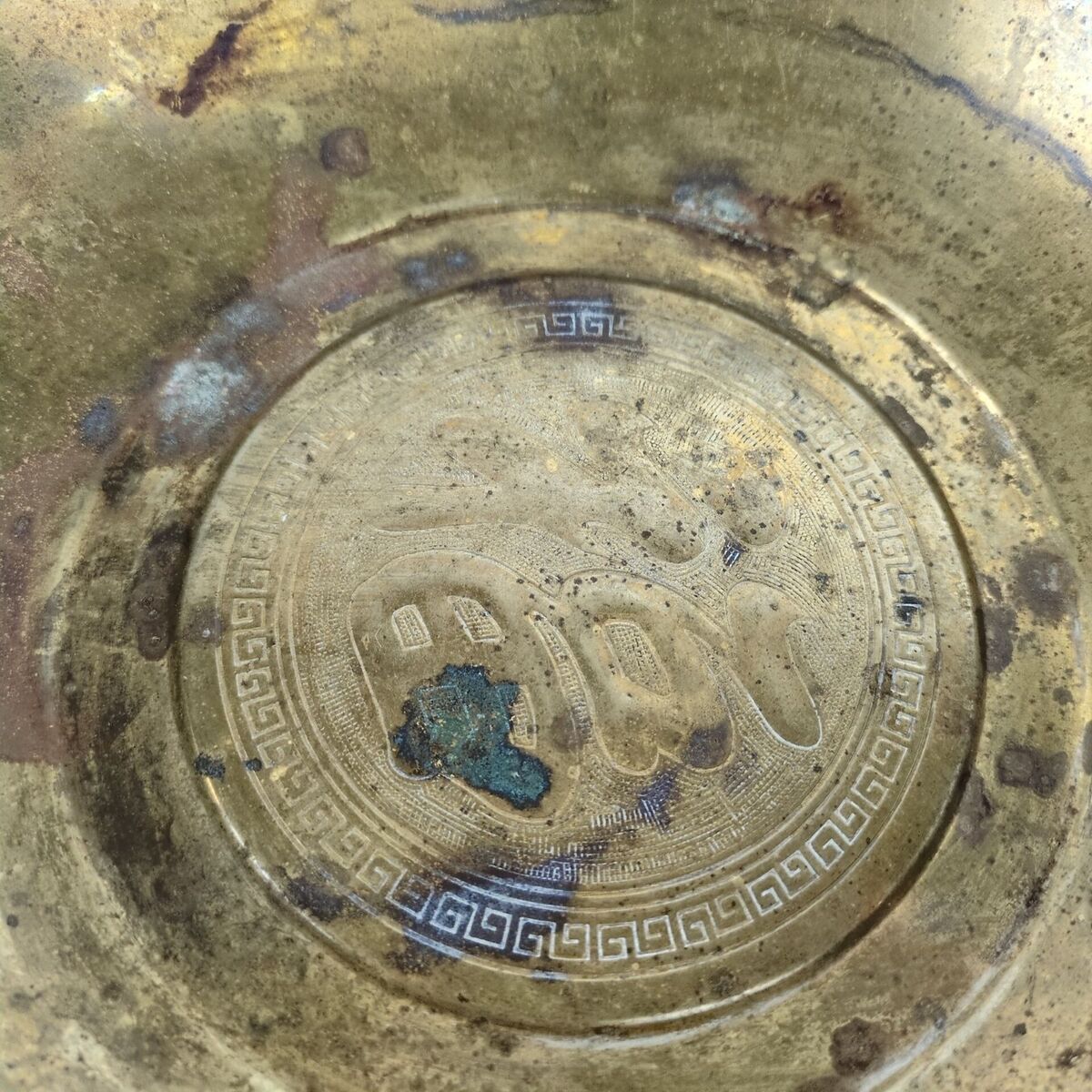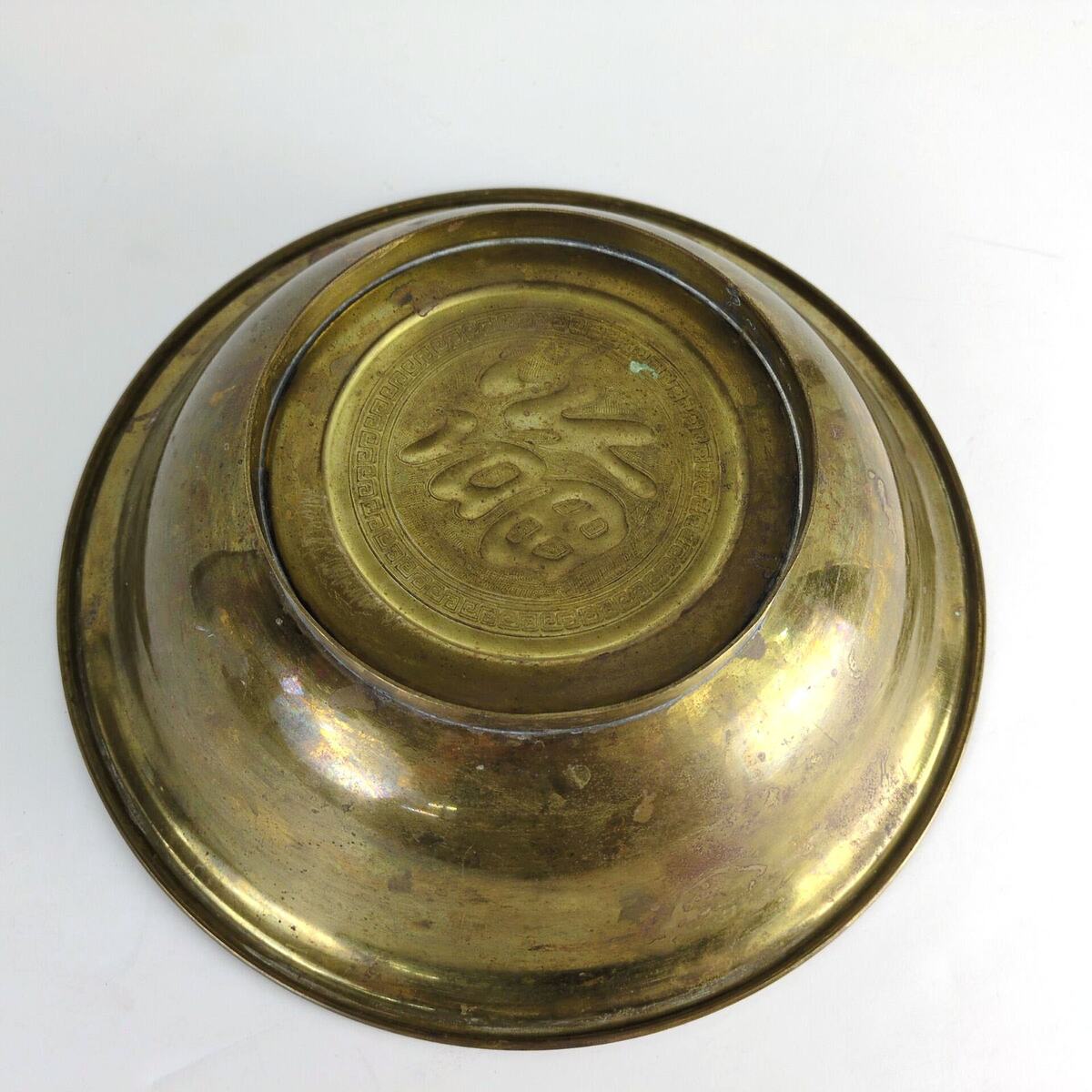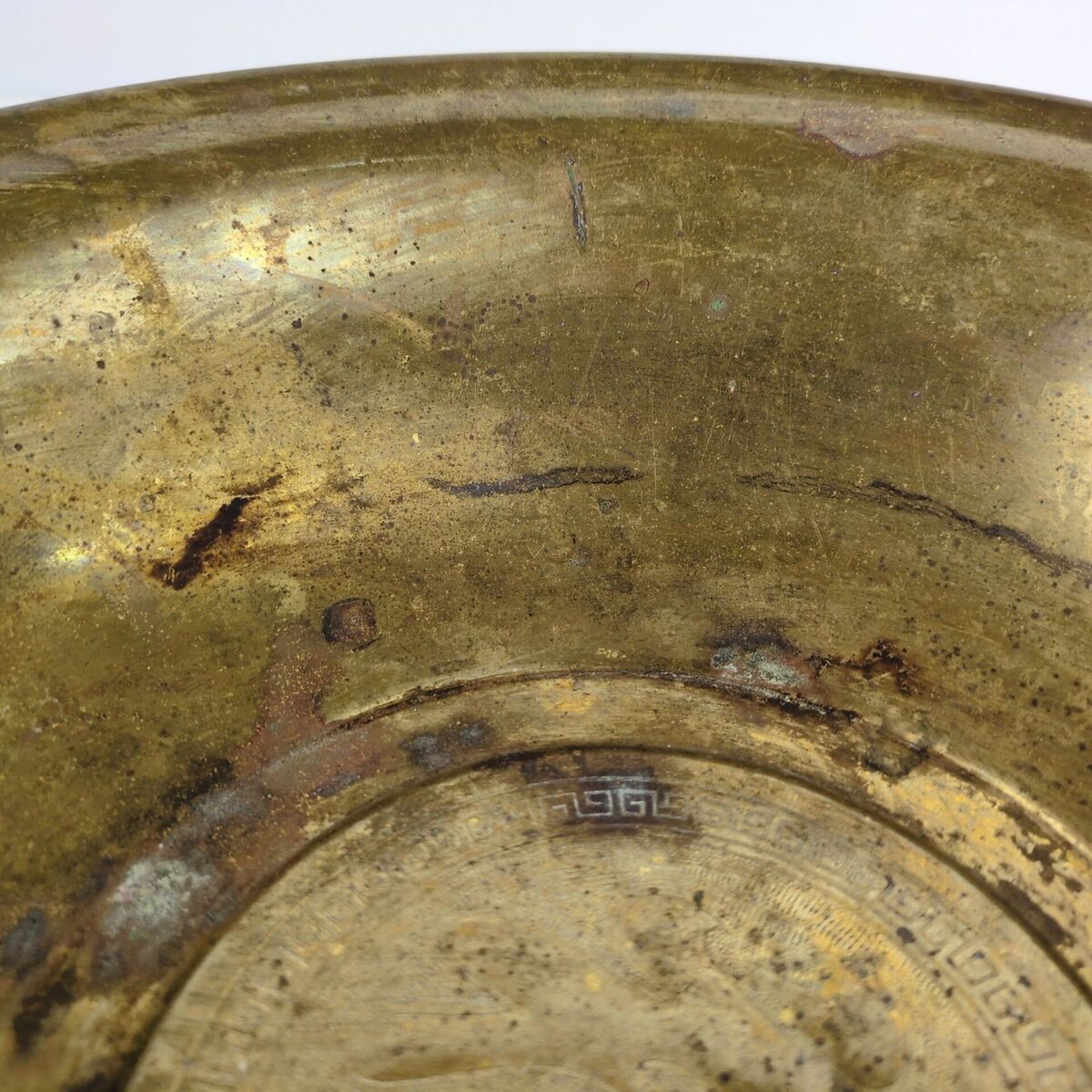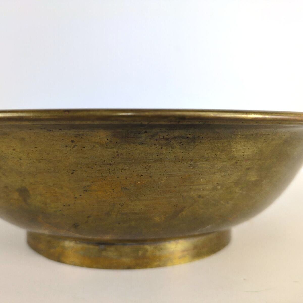 - Vintage Chinese "Good Fortune Blessings" Brass Bowl Large 11.5" Asian Rustic