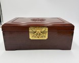 Vintage Chinese Jewelry Carved Rosewood Brass Accents Red Lining Jewelry Box
