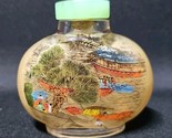 Vintage Chinese Reverse Painted Snuff Bottle Jade Stopper Village Landscape Scen