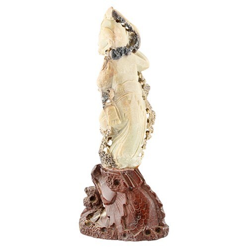 - Vintage Chinese Soapstone Sculpture w/ Red Stone Base Great Detail!