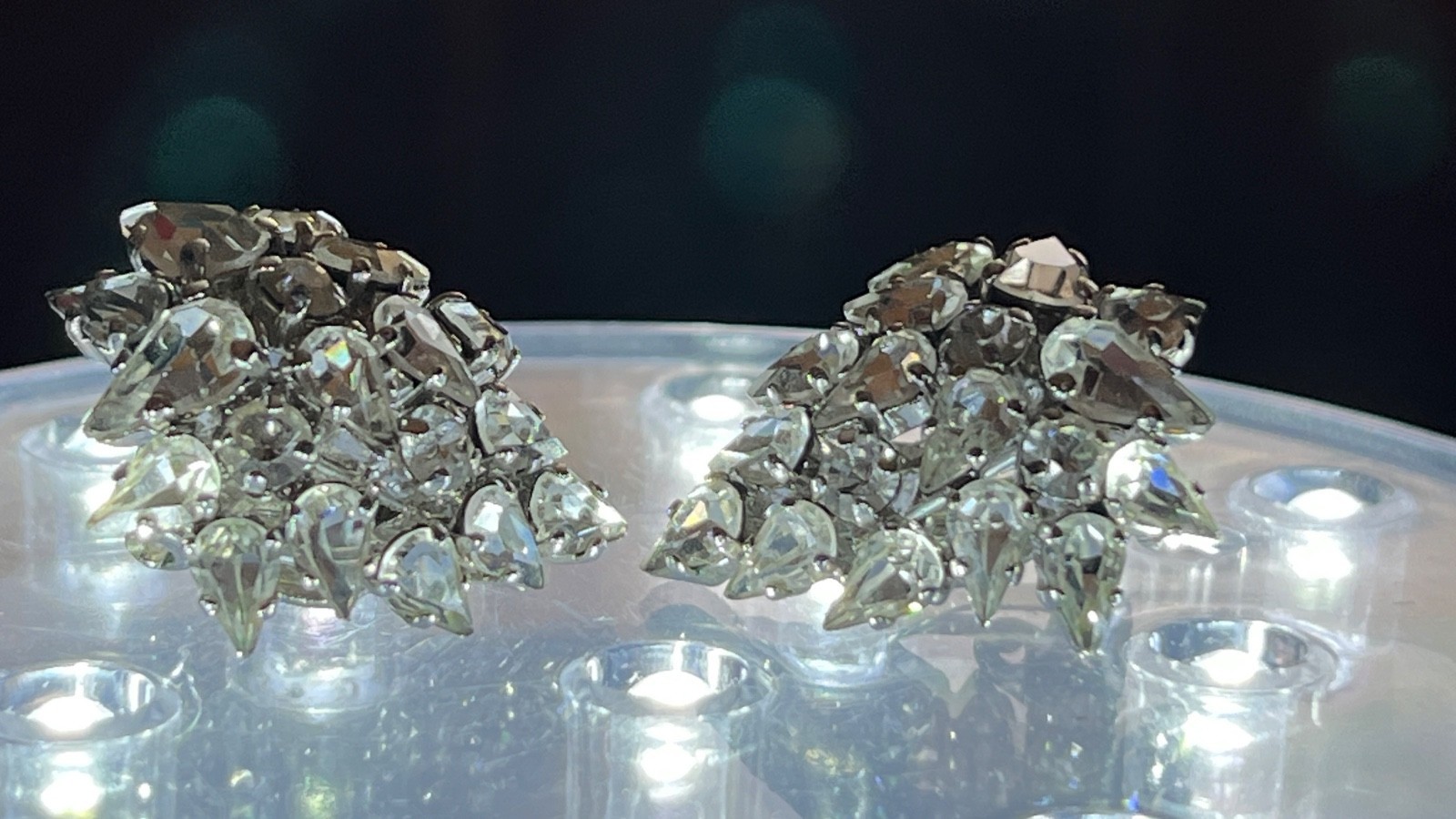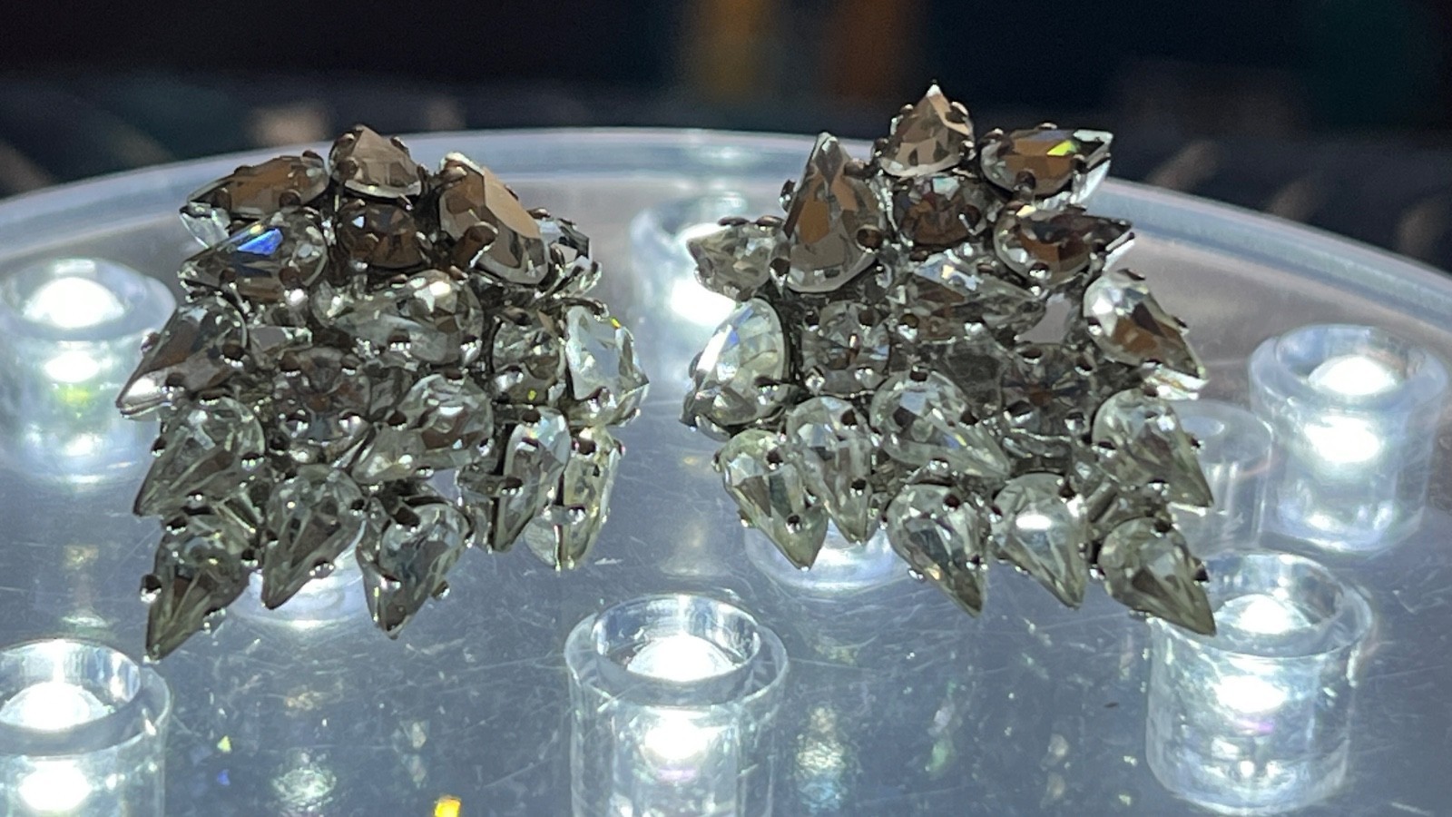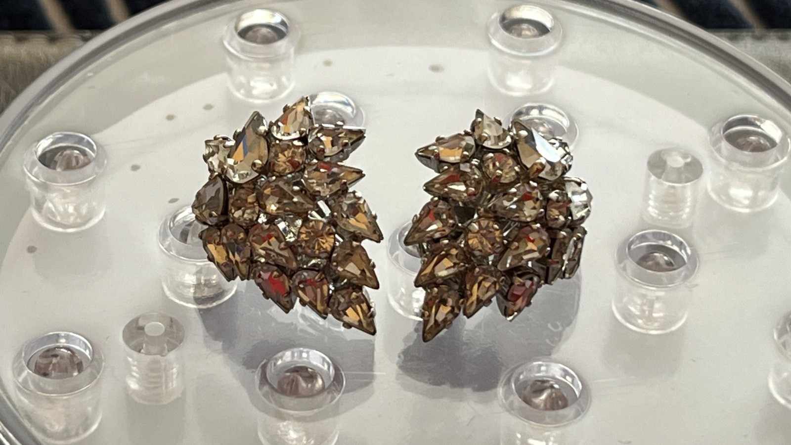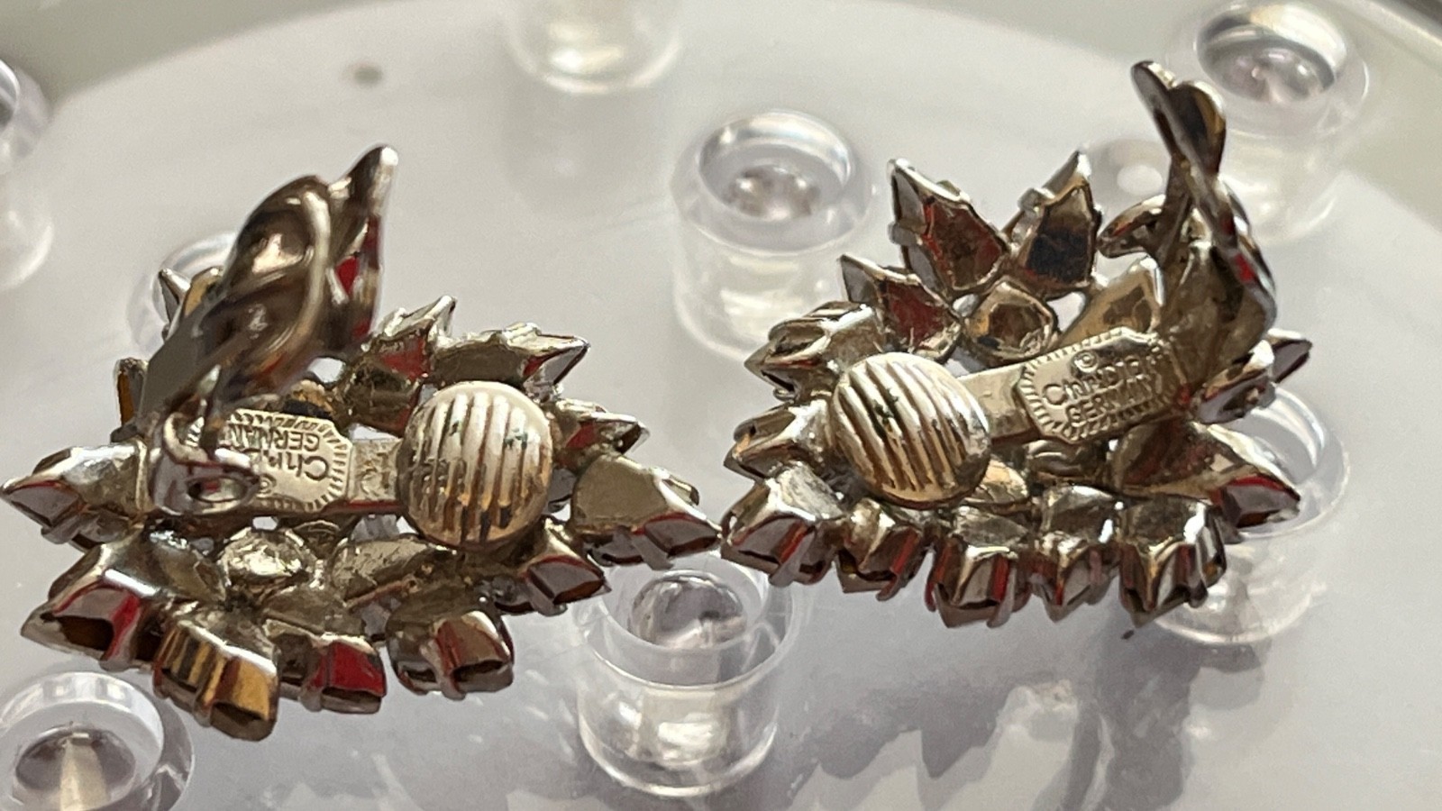 Vintage Christian Dior Germany Crystal Clip Earrings signed Chr Dior rhinestone