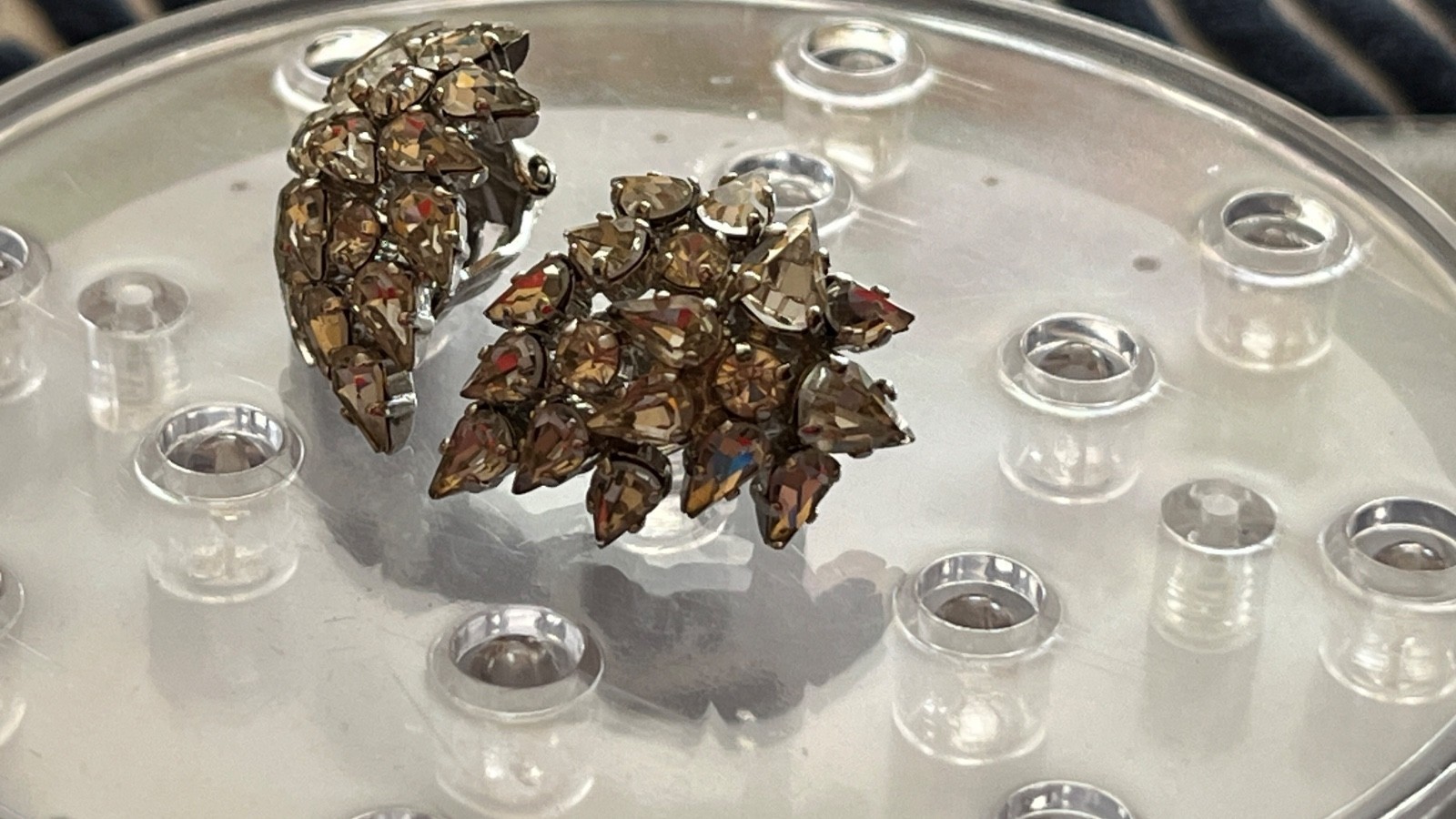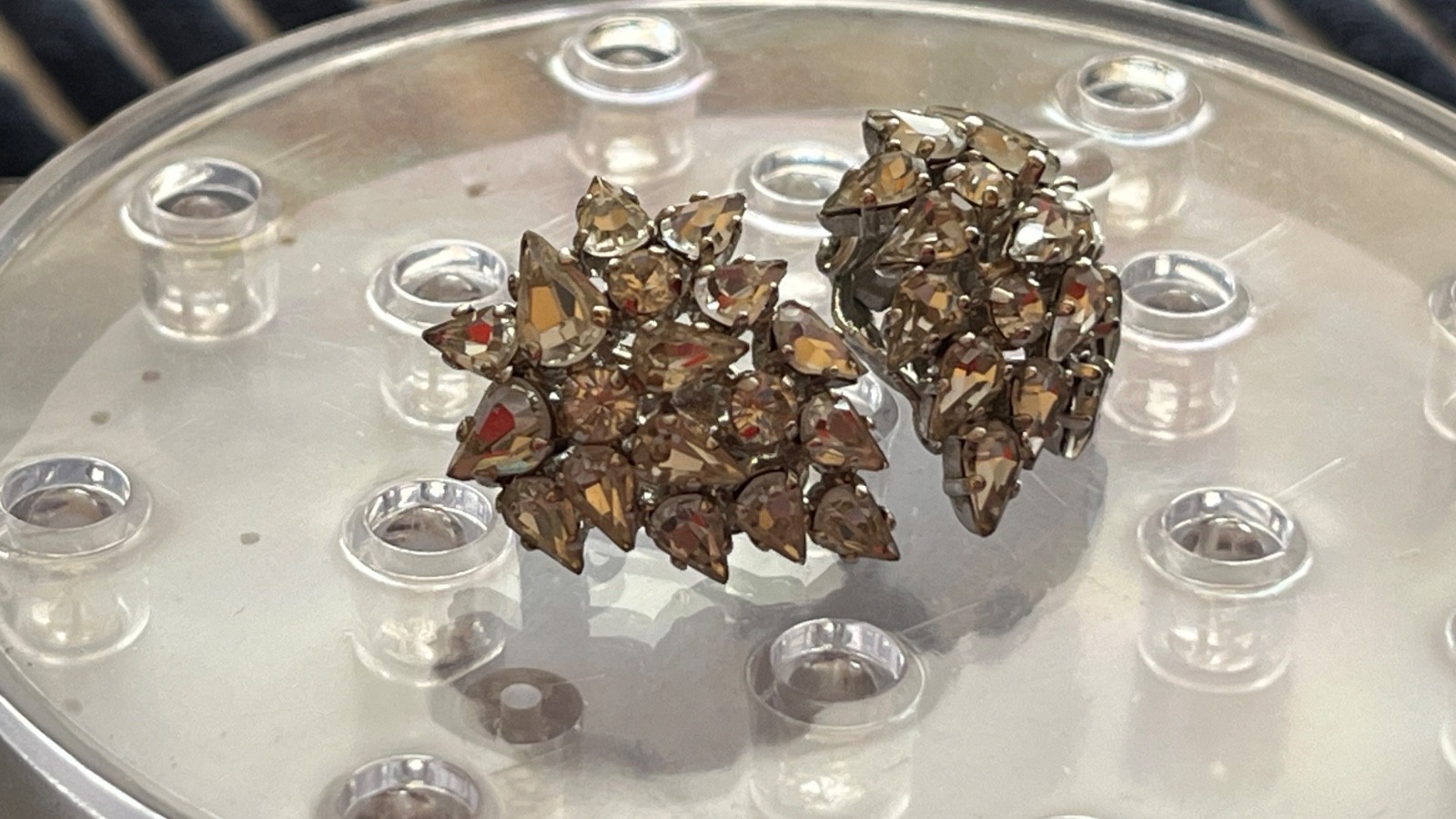 - Vintage Christian Dior Germany Crystal Clip Earrings signed Chr Dior rhinestone