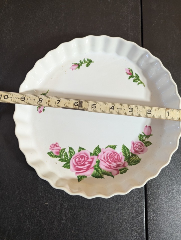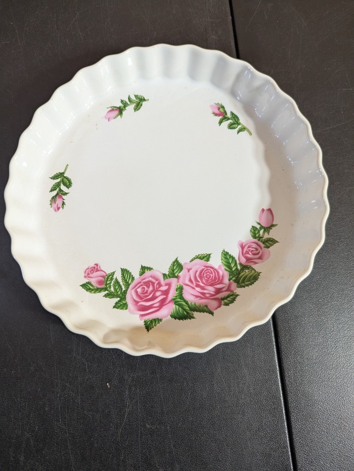 - VINTAGE CHRISTINEHOLM 9" FLUTED QUICHE DISH 8 ROSE EDGE IS 1 1/4" DEEP
