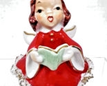 Vintage Christmas Brunette Angel Girl w Spaghetti Trim Figurine 4" Japan In great shape however a few small are missing red paint however the base has a bit of extra green paint