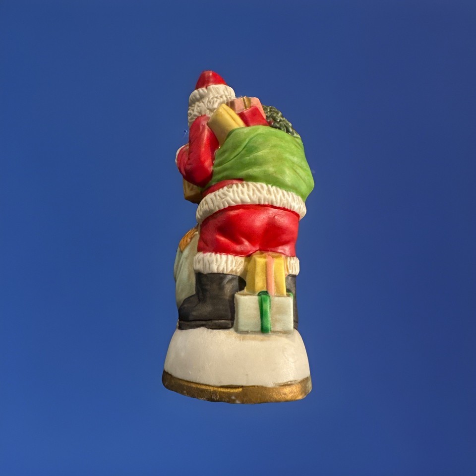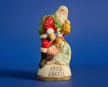 This Vintage Christmas Eve Limited Edition Santa 1909 Brazil Porcelain Figurine is a small, multicolor figurine depicting Santa Claus. Standing at approximately 5 inches tall, this collectible item from the 1990s is part of a limited edition collection. The porcelain material and painted finish add to its charm, making it a unique and festive addition to any Christmas decor. Perfect for collectors or those looking to add a touch of nostalgia to their holiday celebrations.