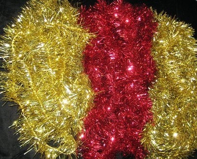 Vintage Christmas Foil Tinsel Garlands Gold and Red 3 Strands