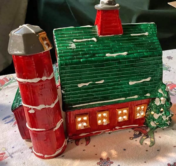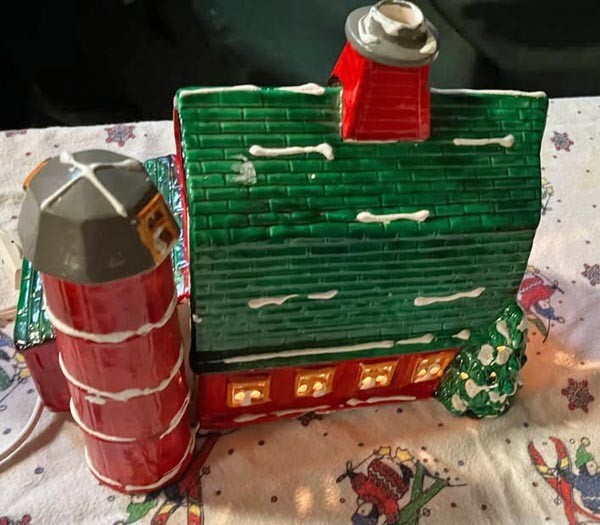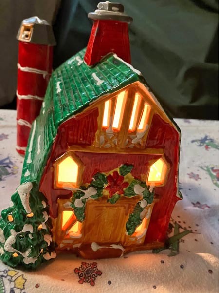 - Vintage Christmas Lighted Ceramic Snowy Barn Large By Pacific Rim 10"x9"
