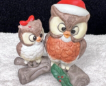 A darling Christmas figure 2 hours of Santa owl and a little girl owl on a branch with Holly 3 1/4 inches tall 3 inches wide about 2 inches deep in excellent condition
