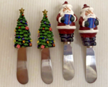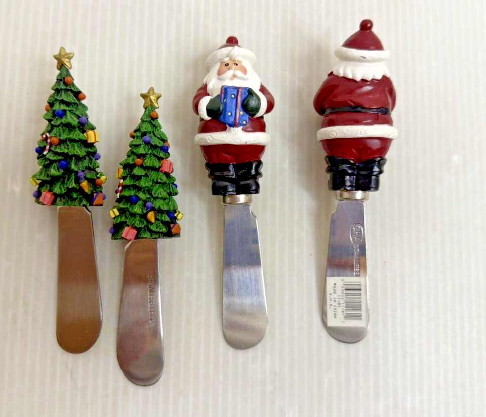 - Vintage Christmas Trees & Santa Claus Cheese Spreaders Butter Knives Set Of 4