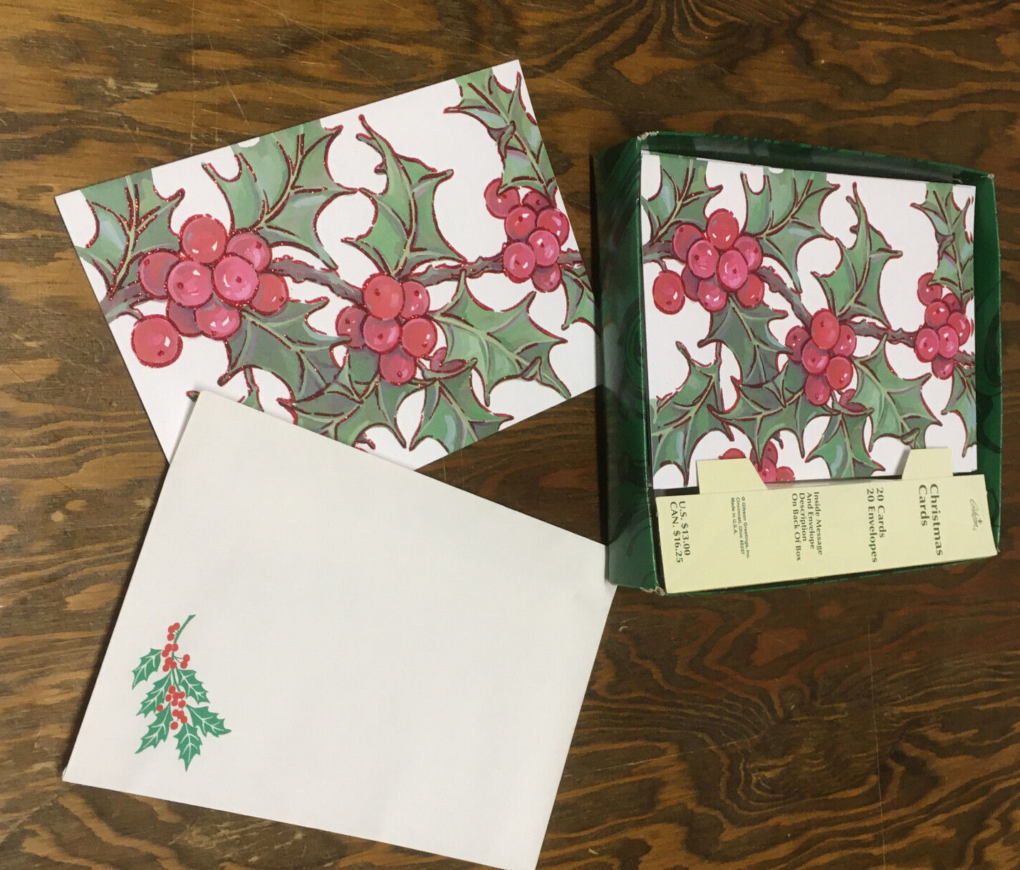 - Vintage Christmas cards holly berries mistletoe print with envelopes