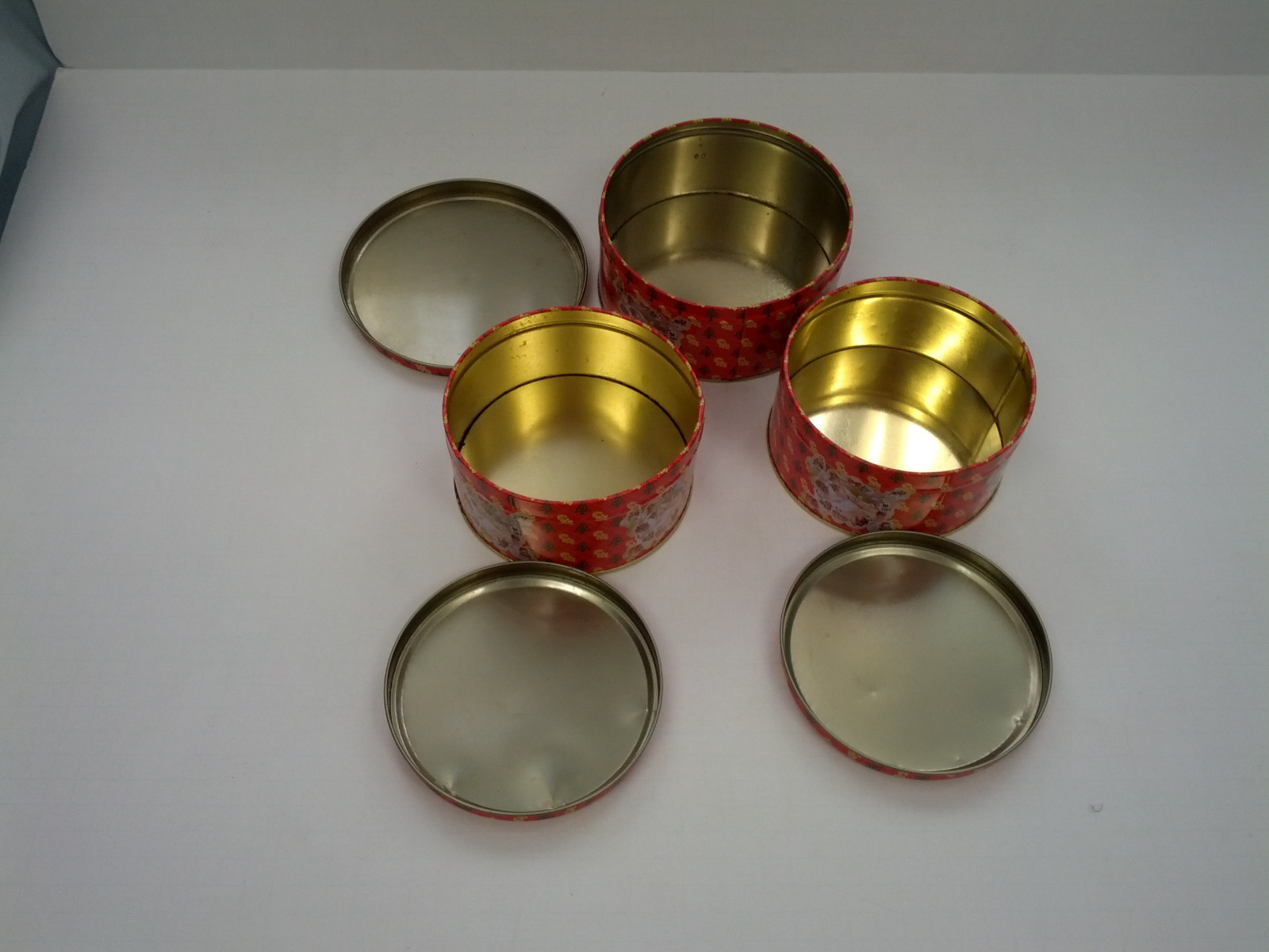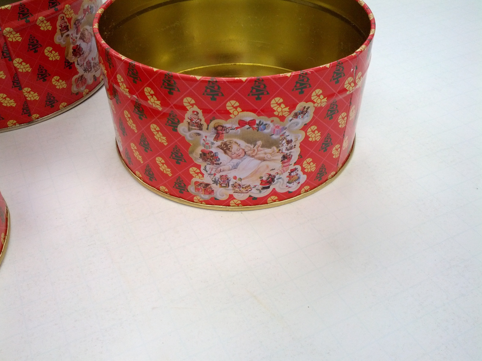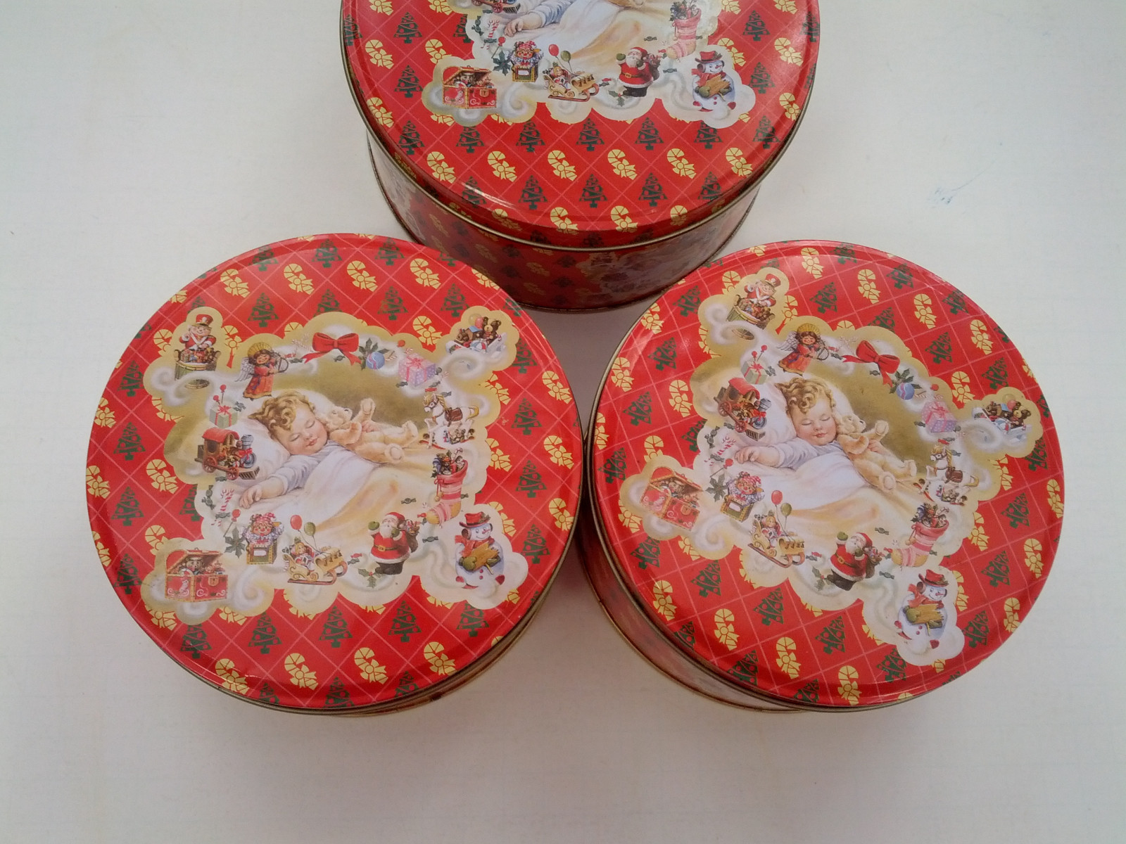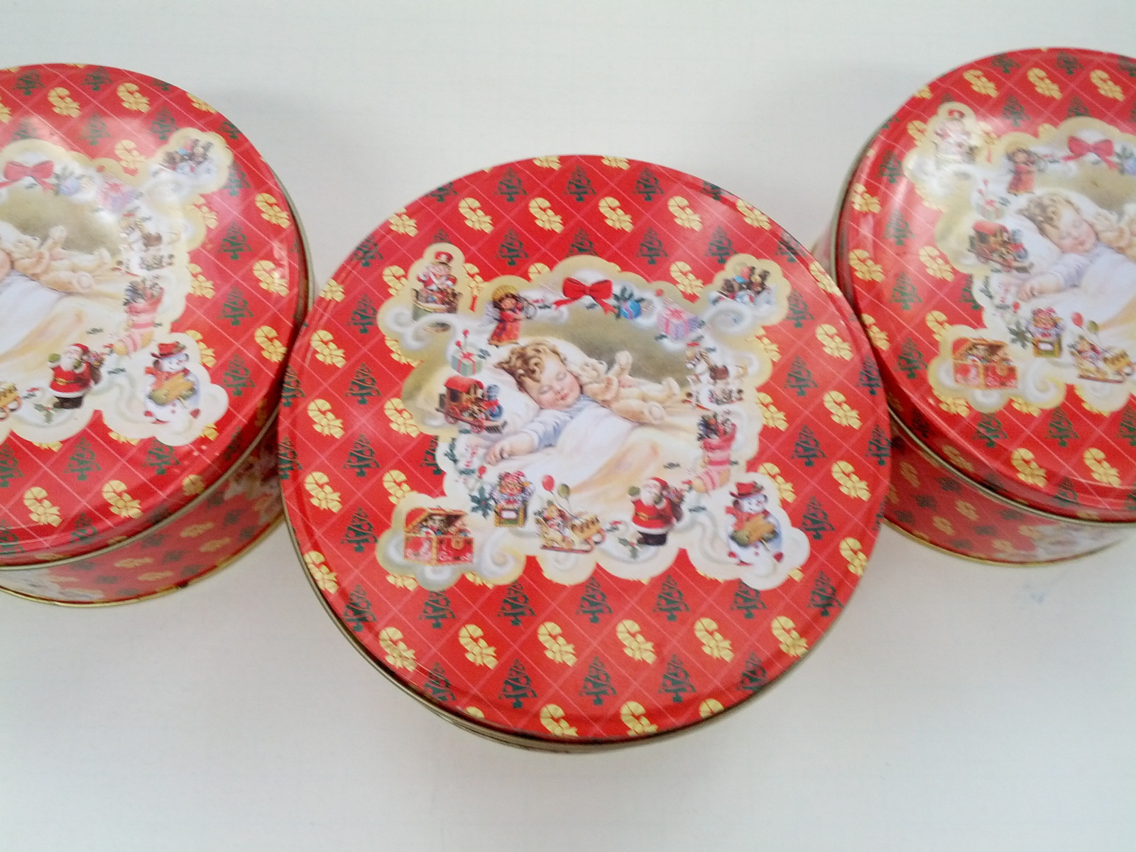 - Vintage Christmas with a sleeping child design 3 round metal tin container lot