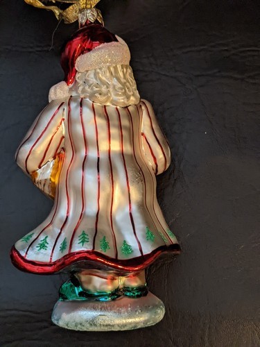 - Vintage Christopher Radko Pajama Book Candle Santa Ornamento In Vetro Soffiato