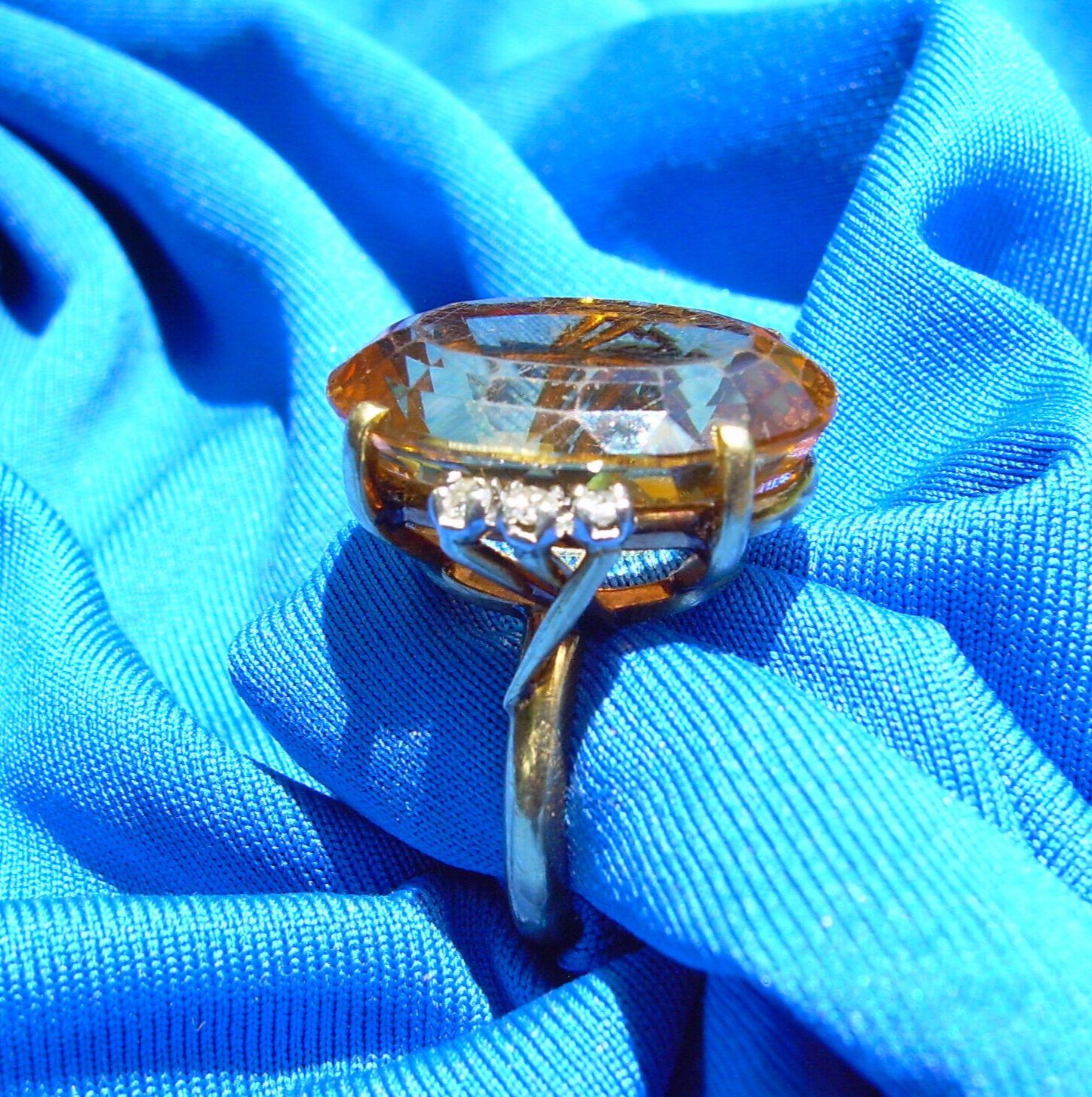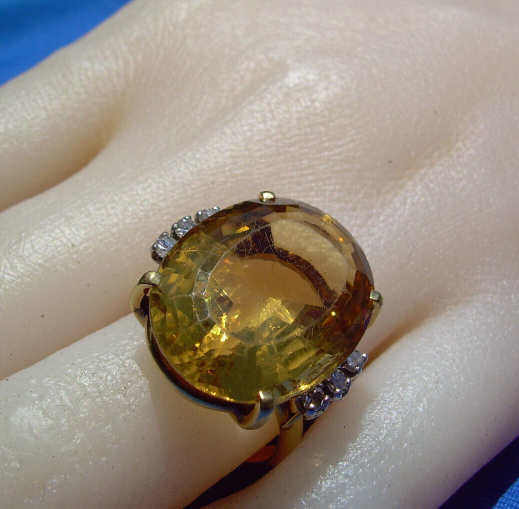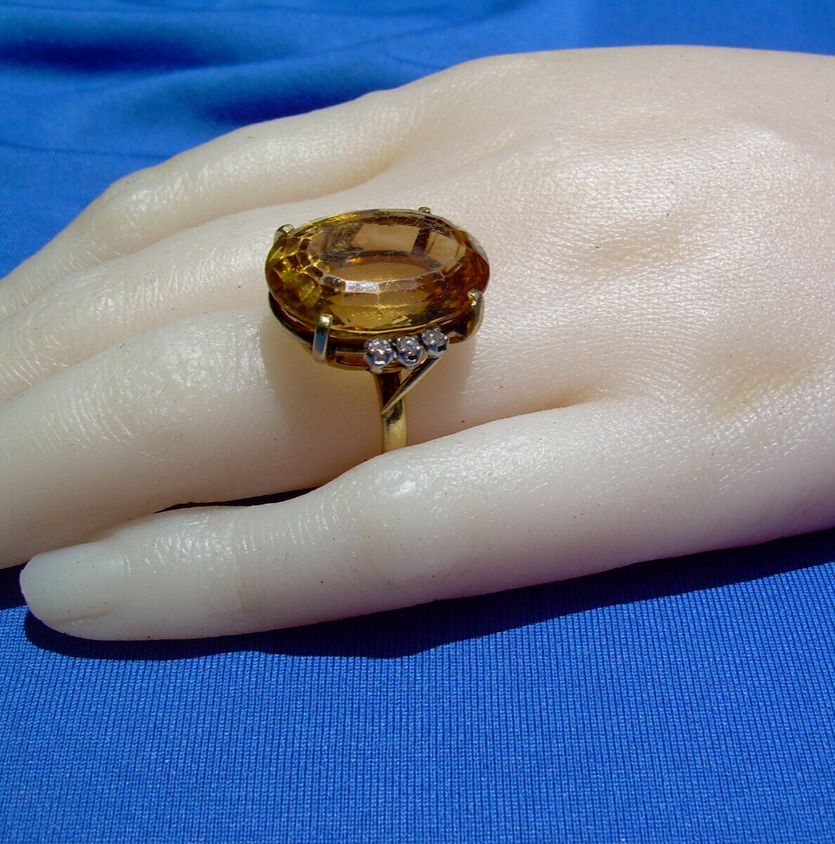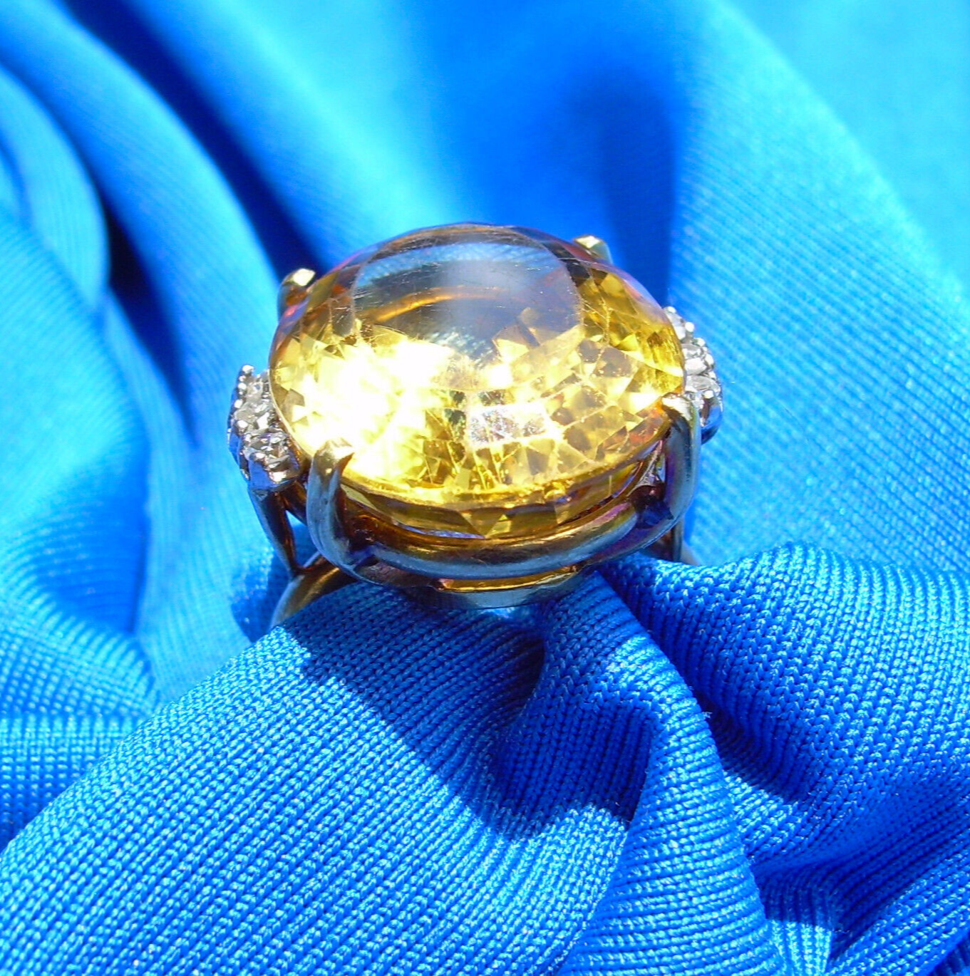 - Vintage Citrine Diamond Engagement Ring Designer Signed Solid 18k Gold Statement