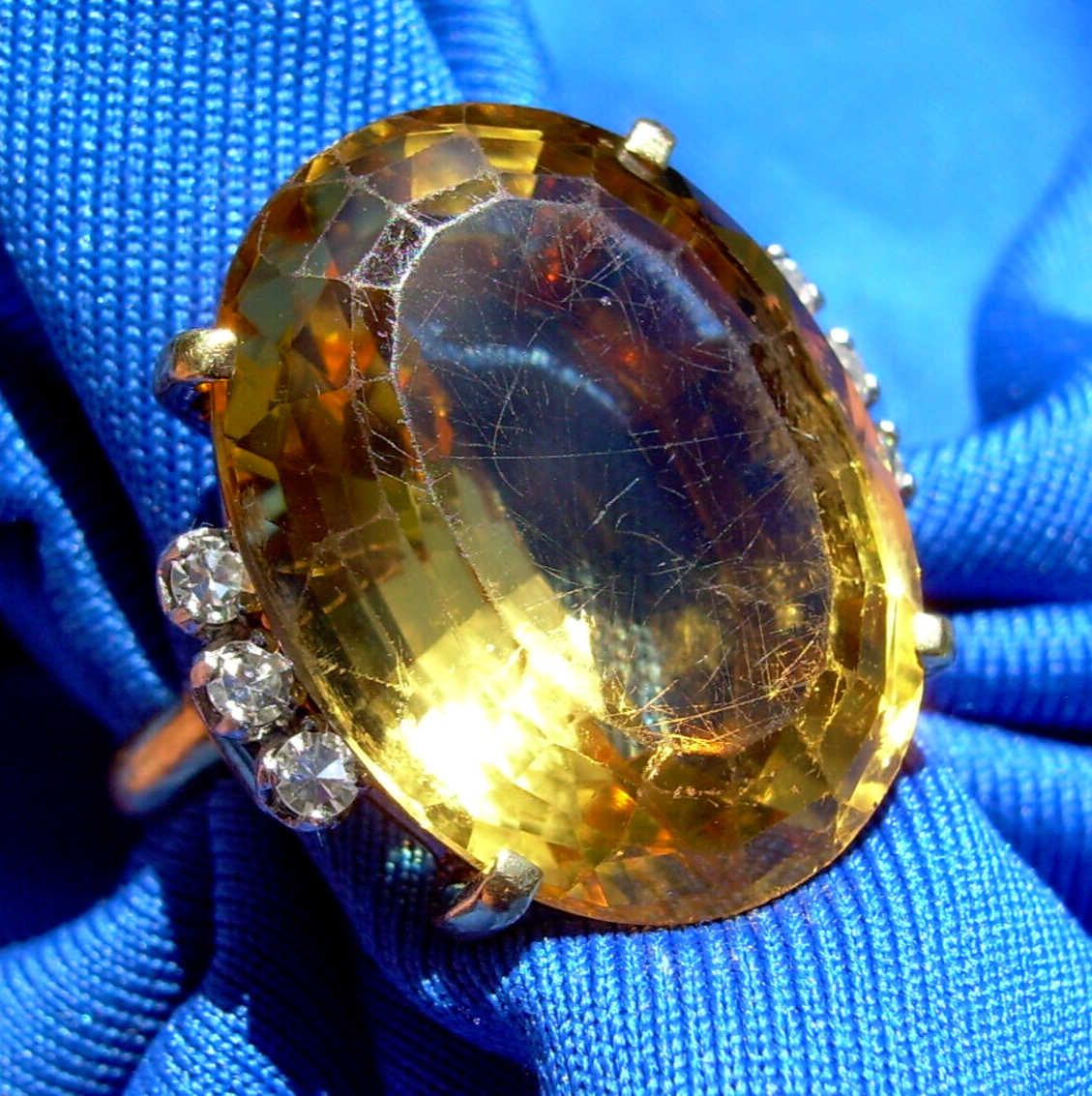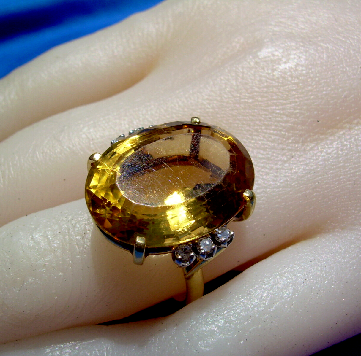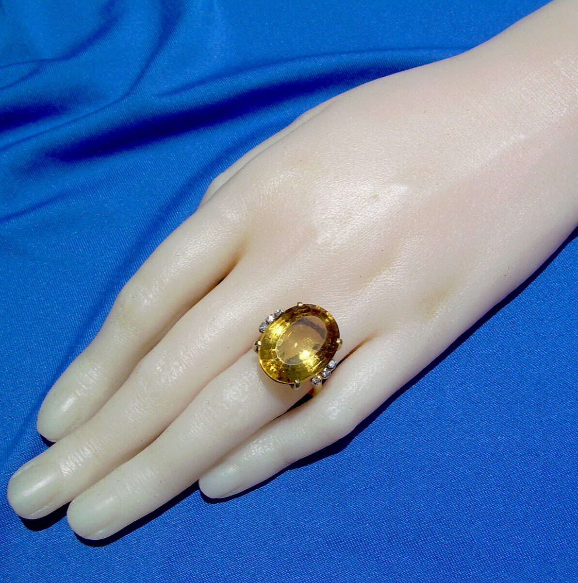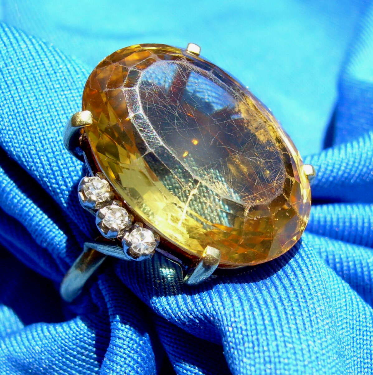 CITRINE DIAMOND ART DECO ENGAGEMENT STATEMENT RING 18K GOLD.