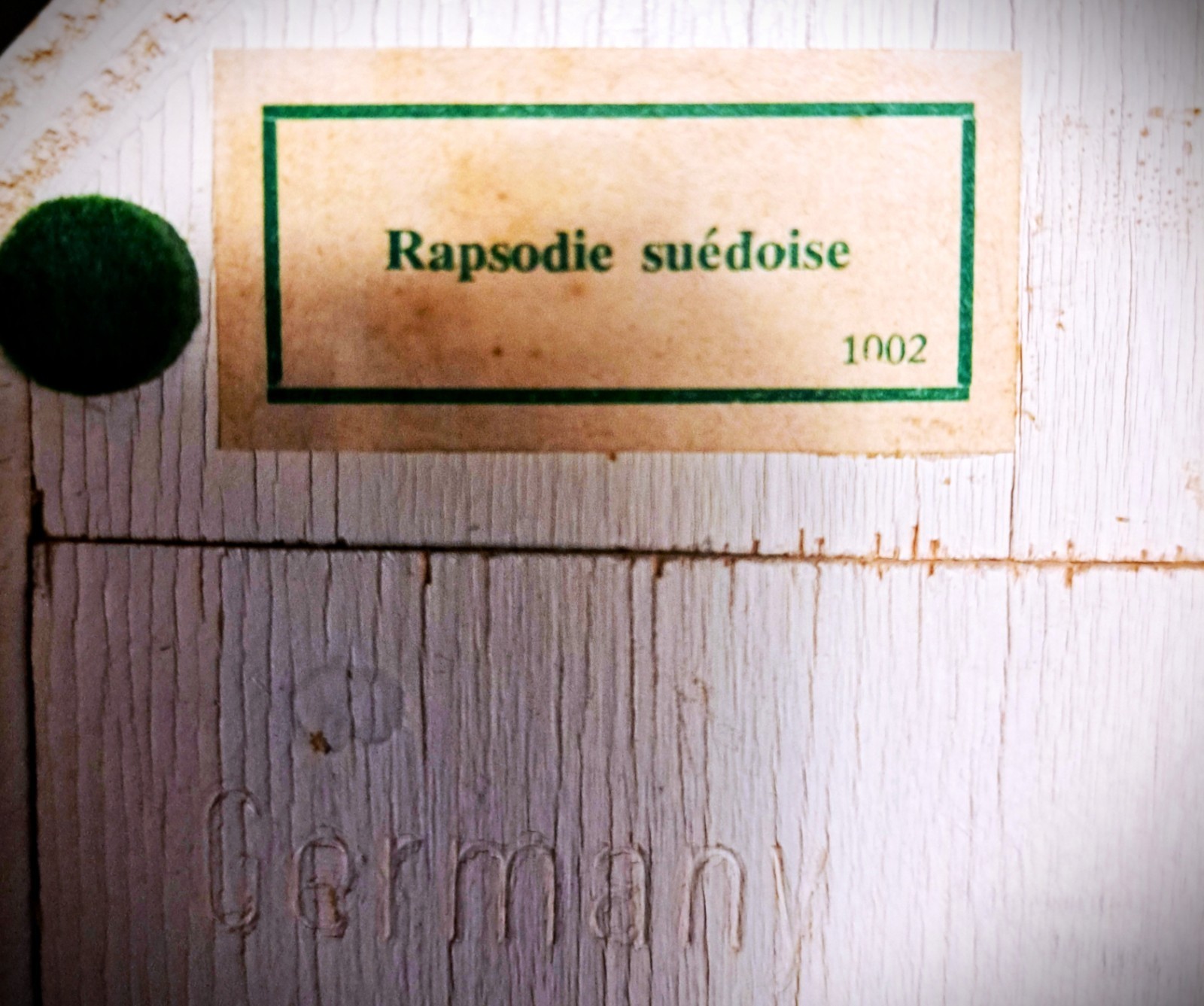 cleaned then oiled. Music box plays ?Rapsodie Suedoise? melody at the top of