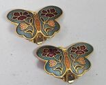 - Vintage Clip Earrings Cloisonne Butterflies 2 Inch