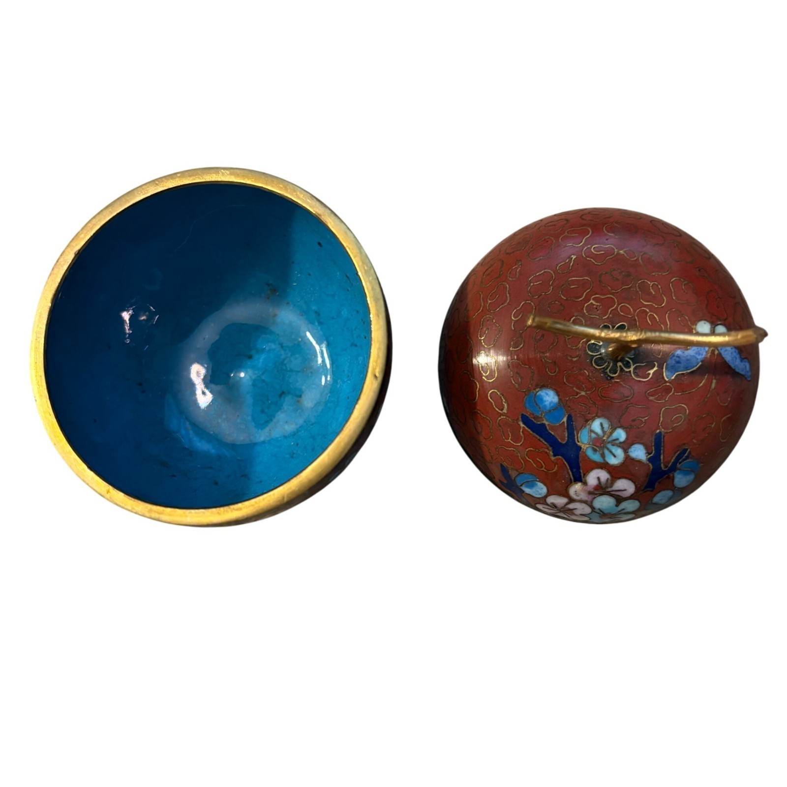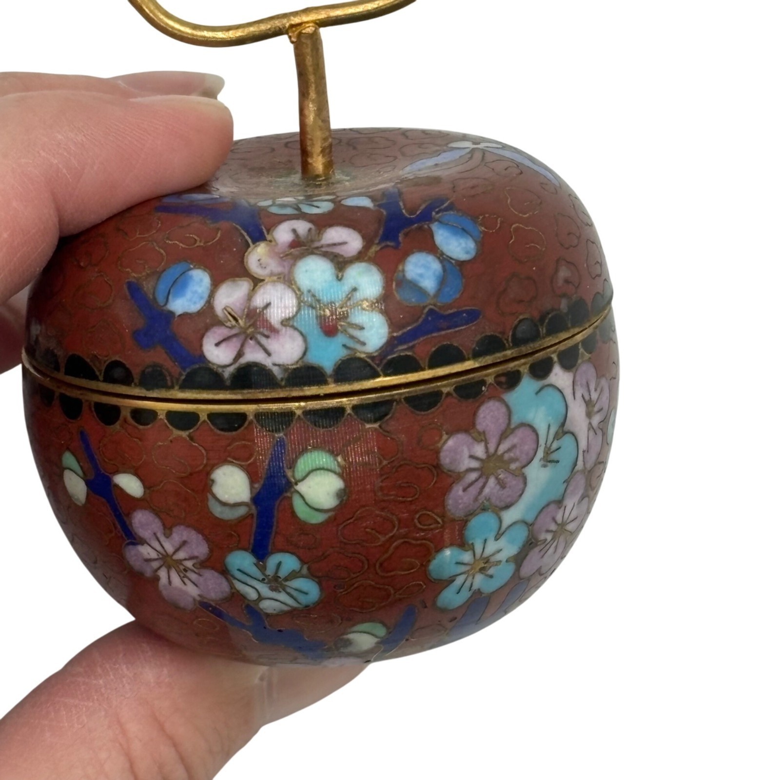 - Vintage Cloisonné Apple-Shaped Trinket Box With Floral Design & Enamel Interior