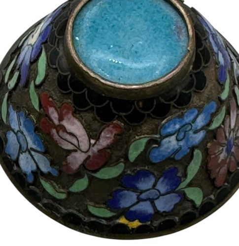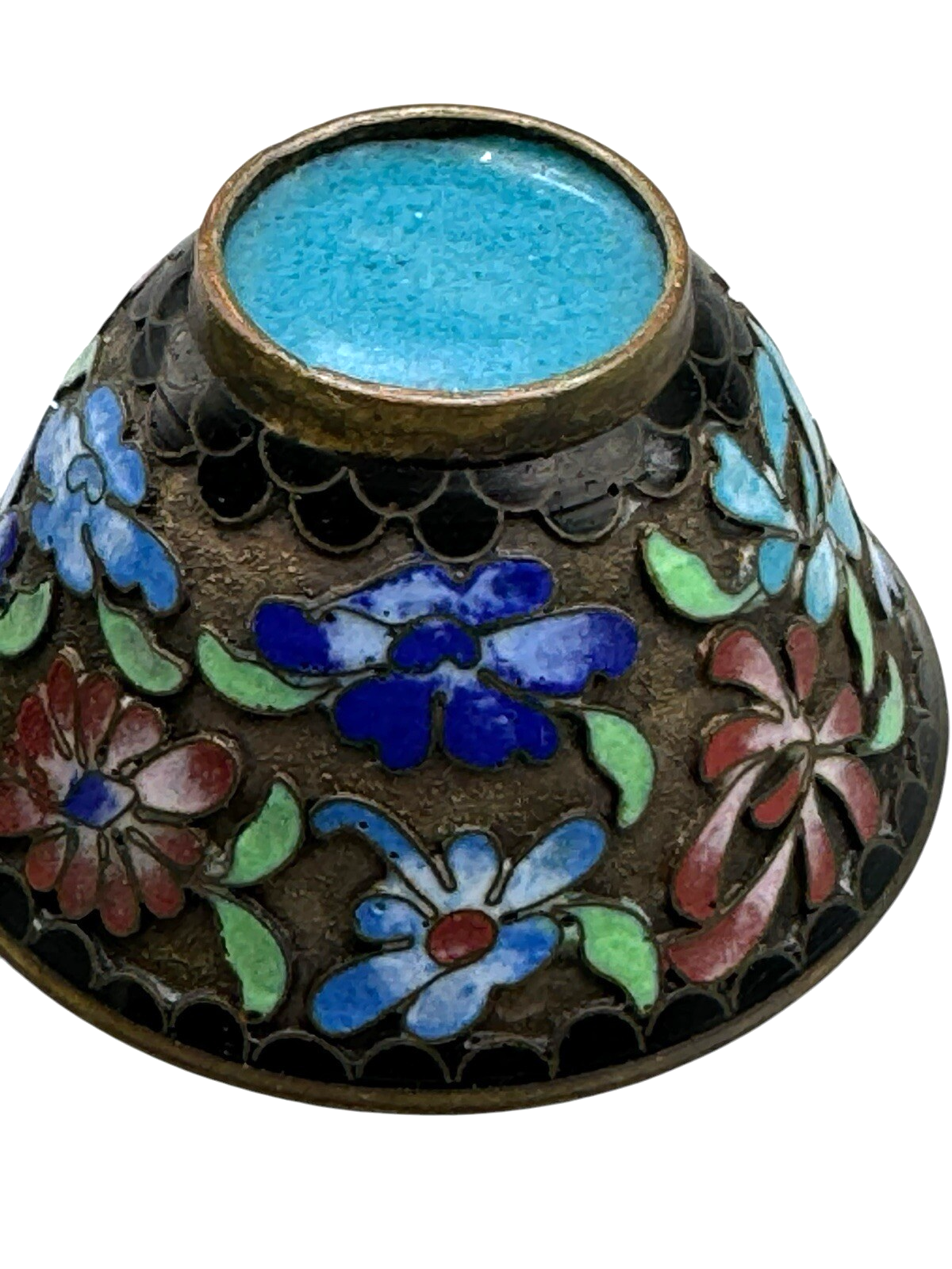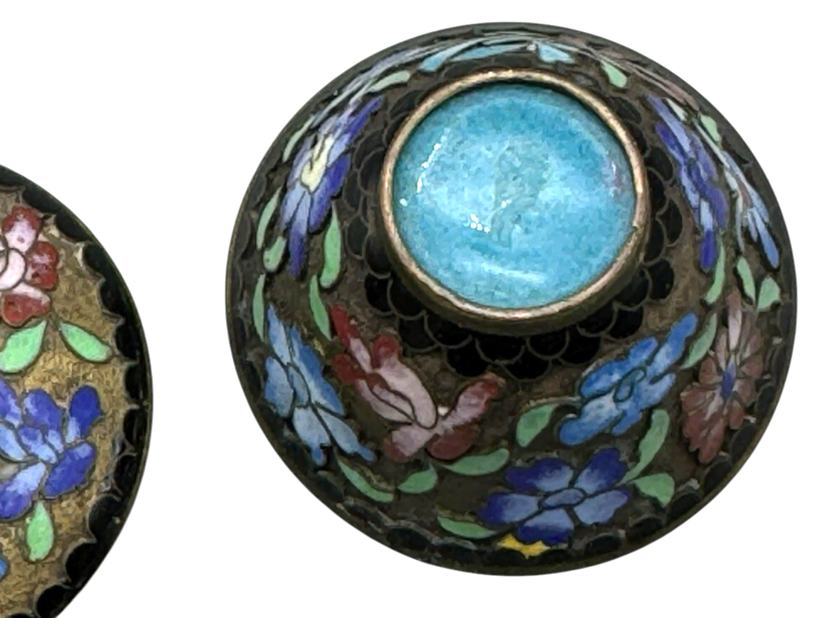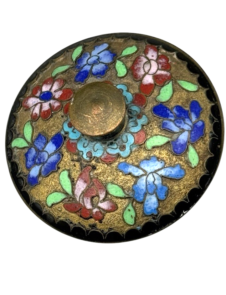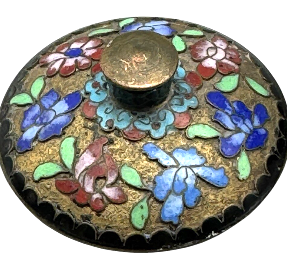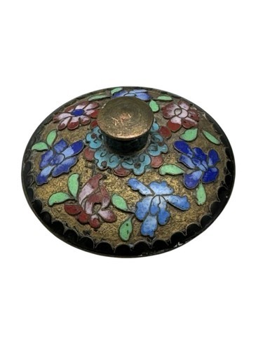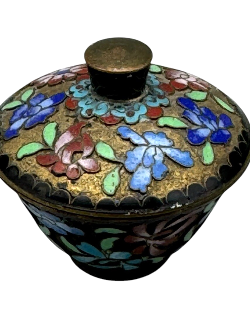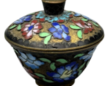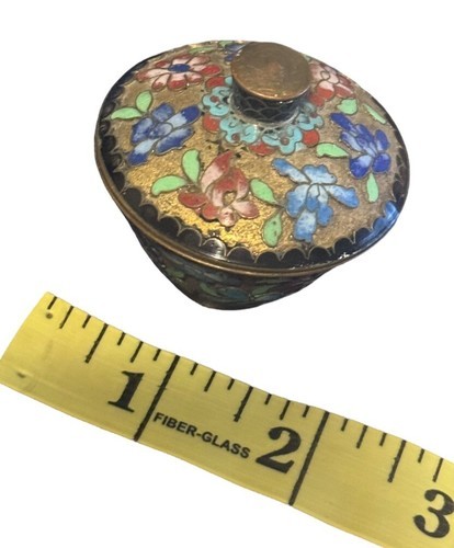 - Vintage Cloisonne Round Trinket Box Enamel Brass & Lid 2" Miniature Floral Bowl