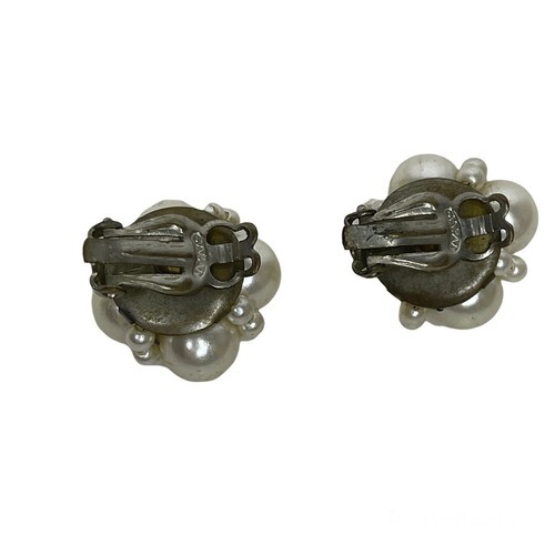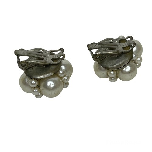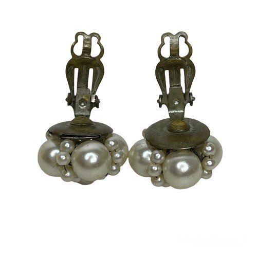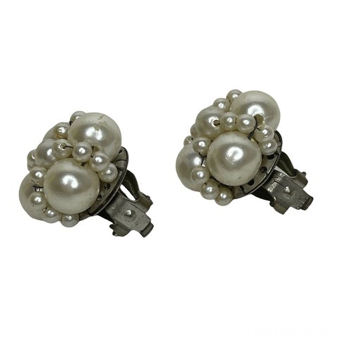 - Vintage Cluster Beads Faux Pearls Clip-On Earrings Japan Plastic Lucite Earbobs