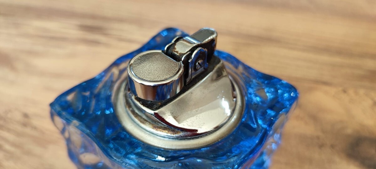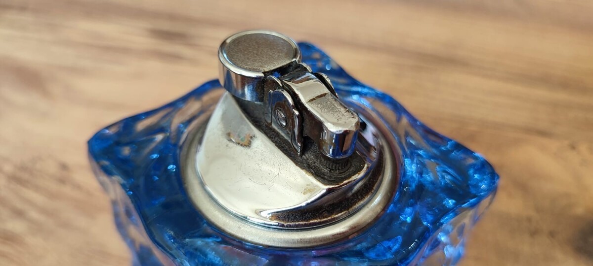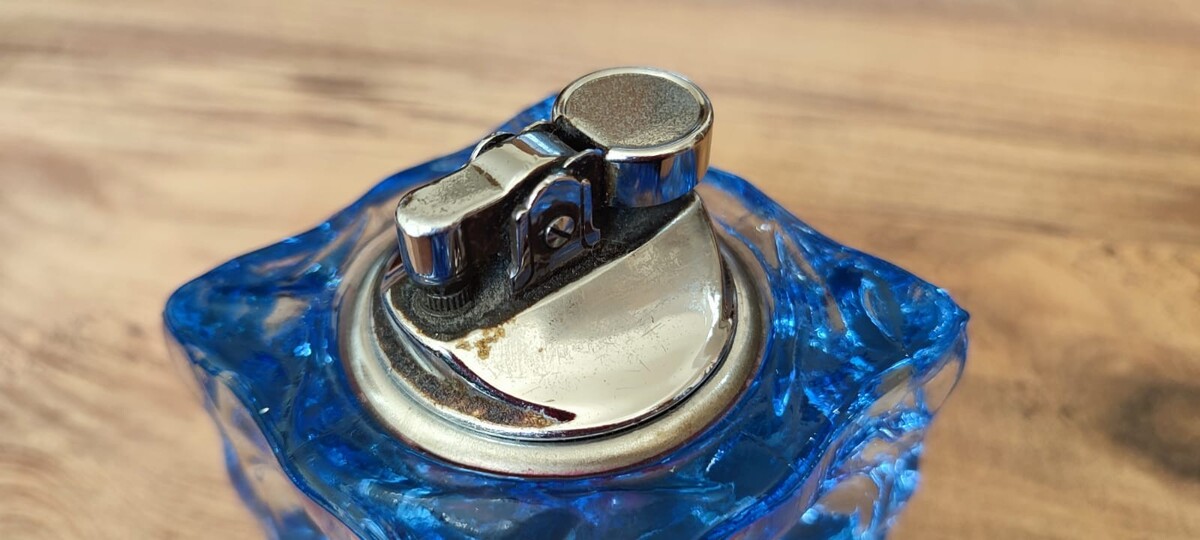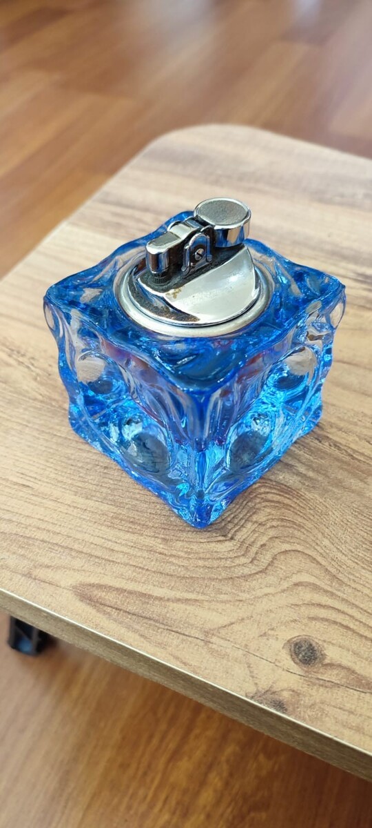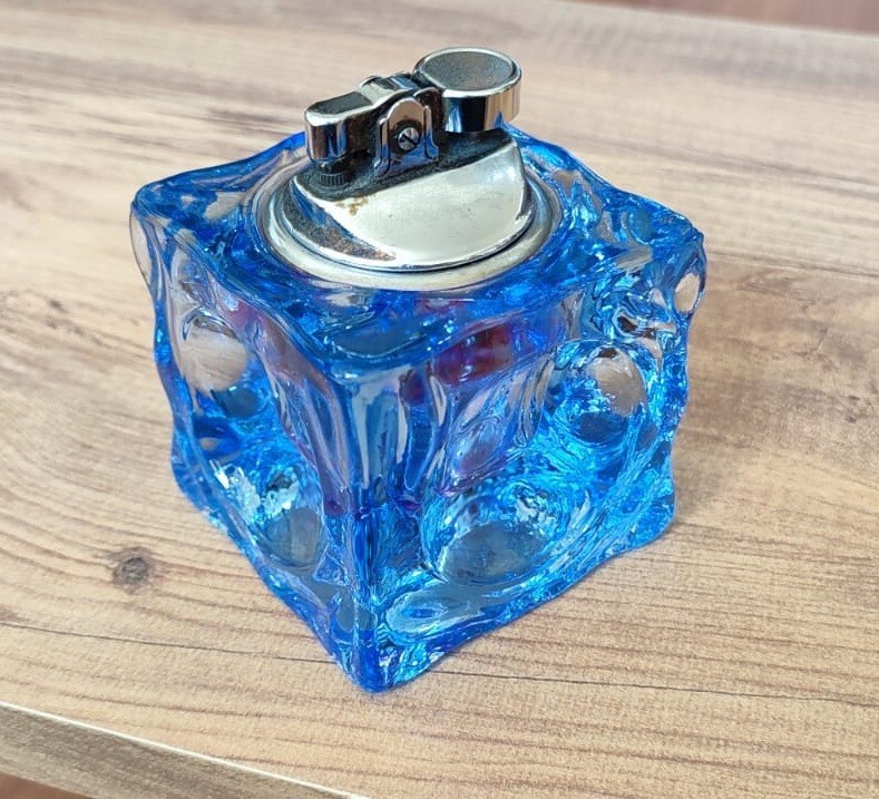 Add a touch of mid-century charm to your space with this stunning blue art glass table lighter.