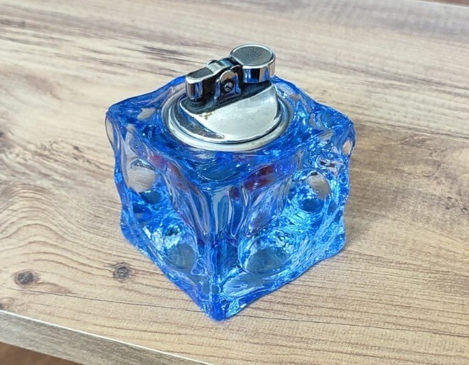 - Vintage Cobalt Blue Art Glass Table Lighter: Mid-Century Modern Cube Decor