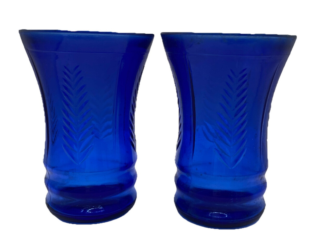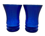 - Vintage Cobalt Blue Glass Small Tumblers with Leaf Pattern Set of 2