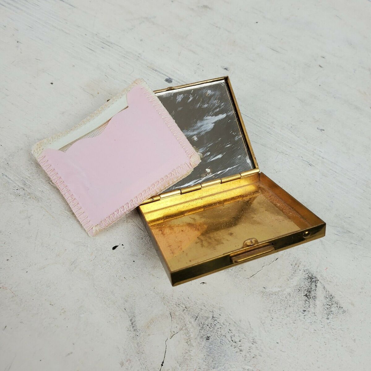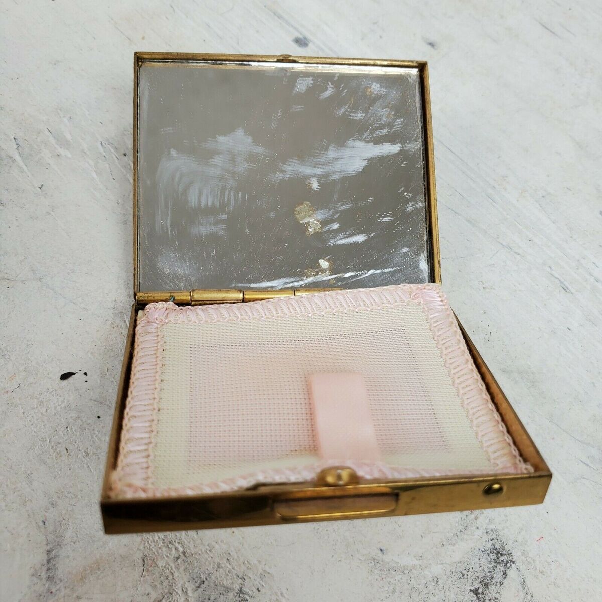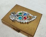 - Vintage Compact Gold Tone w/ Silver Beaded Leaf on Cover 2 Inch