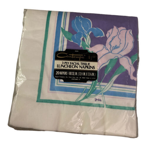 I have for sale a brand new package of Vintage Contempo Floral Flower Luncheon Napkins (20). They measure 13 1/2? x 13 3/8?. If you have any questions, please ask. I do combine shipping. Check out my other items.